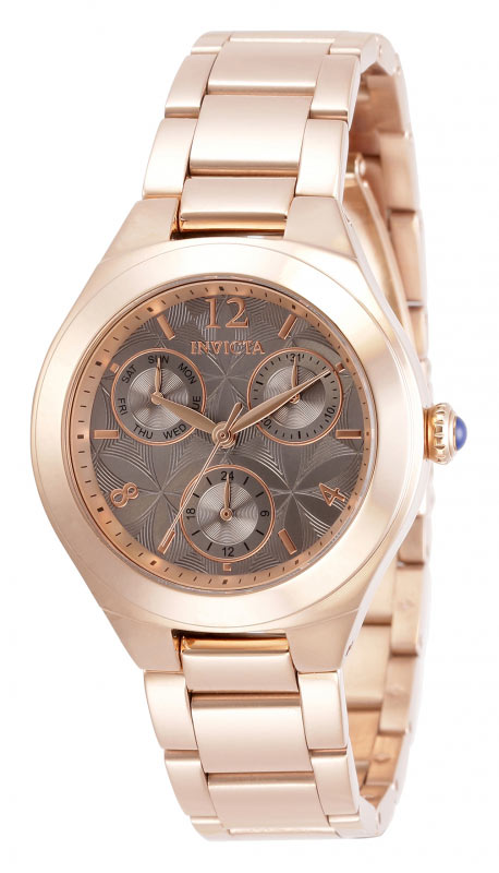Stojí za zmínku, že tento model je vybaven přesným japonským mechanismem Seiko VH68, který zajišťuje perfektní měření času. Ciferník hodinek obsahuje funkční ukazatele: den v týdnu, den v měsíci a denní čas ve formátu 12/24 hodin, díky čemuž má uživatelka vždy plnou kontrolu nad svým harmonogramem. Šedý ciferník se vzorovým motivem dodává hodinkám jedinečný charakter a špetku charismatu, zatímco jeho kontrast s pozlaceným povrchem pouzdra podtrhuje jedinečný styl tohoto návrhu. Elegantní dámské hodinky Invicta Angel 30680 nejsou jen spolehlivým časoměřičem, ale také výrazným šperkem, který přidává lesk a podtrhuje individualitu každé ženy. Ideální pro každou příležitost, představují dokonalou kombinaci praktičnosti a luxusu.