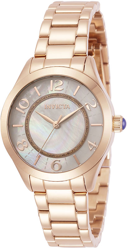 Elegantní a podmanivé dámské hodinky Invicta Angel 31114 zdobí úžasný perleťový ciferník s výraznými arabskými číslicemi. Pouzdro i náramek jsou vyrobeny z nerezové oceli, zlacené růžovým zlatem, z horní strany uzavřeny sklem odolným proti poškrábání Flame Fusion .