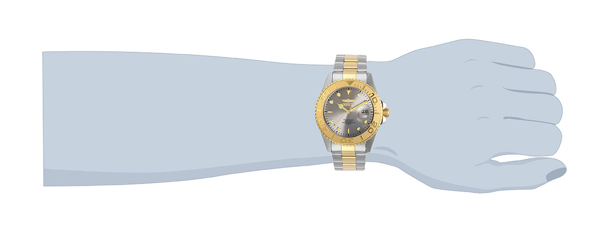 Sportovní hodinky Invicta Pro Diver 29950 pro muže v diverském stylu. Vyrobeno z nerezové oceli v pouzdře o průměru 43 mm s otočným diverským prstencem, jehož diverská stupnice je konvexní. Taková řešení se používají v diverských hodinkách, aby si diver v obleku mohl snadno nastavit čas potápění. Minerální sklíčko s lupou na datumovce kryje ciferník stříbrné barvy s čirými indexy a velkými ručičkami, které jsou navíc pokryty luminiscenční hmotou. Matně leštěný náramek s pozlacenými prvky bude fungovat nejen pod vodou, ale bude ladit i s košilí či sakem.