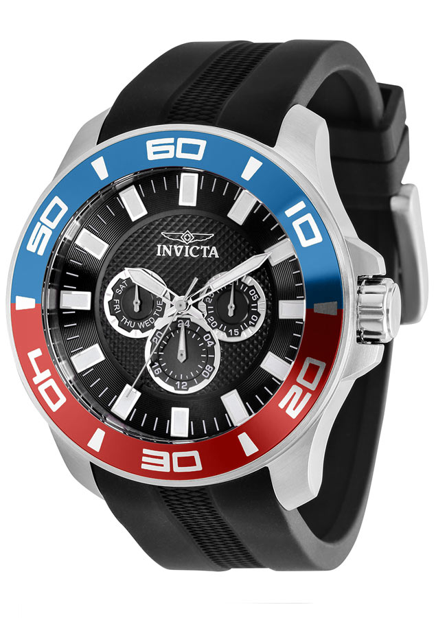 Hodinky Invicta Pro Diver 35740 s pouzdrem z nerezové oceli o obrovském průměru 50 mm s matnými prvky a leštěnými boky. Dvoubarevná luneta s minutovou stupnicí. Krásně zdobený ciferník s velkými a jasnými indexy, které na světle září jasně modrou barvou. Nahoře na ciferníku je zřetelné logo Invicta a pod ním datumovky s názvem dne v týdnu a číslem dne v měsíci a také 24hodinový ukazatel času Třída vodotěsnosti 10 bar/100 m zajištěno šroubovacím pouzdrem, což znamená, že v něm můžete bez problémů plavat nebo dokonce plavat. Srdcem hodinek je bateriový mechanismus japonské výroby. Doplňkem je pohodlný a neuvěřitelně měkký gumový pásek, který se dokonale přizpůsobí tvaru zápěstí.