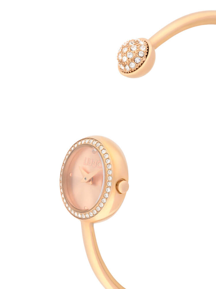 Model Liu Jo TLJ2505 má pouzdro o průměru 20 mm vyrobené z pozlaceného kovu, zdobené řadou třpytivých zirkonů. Zlatý ciferník s jemným vzorem a kamínky na indexech podtrhuje jejich elegantní charakter. Celý model doplňuje přesný quartzový strojek, který zaručuje spolehlivý chod. Jsou to módní šperkové hodinky s pevným náramkem, které spojují funkčnost s leskem současné elegance. Italské pozlacené hodinky Liu Jo na náramku jsou skvělým tipem na dárek pro blízkou osobu a stylovým doplňkem každého dámského šatníku.