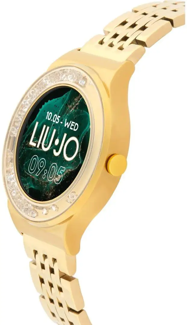 Liu Jo Smartwatch Voice Dancing SWLJ206 je vybaven dotykovým displejem IPS překrytým hesalitovým sklem a pouzdrem ve zlaté barvě ozdobeným zirkony, které modelu dodávají bižuterní charakter. Hodinky jsou spojeny s pozlaceným ocelovým náramkem s klasickým pletením, zapínaným na bezpečnou přezku motýlkového typu. Systém umožňuje personalizaci ciferníku, přizpůsobení vzhledu smartwatche stylu uživatelky a rychlý přístup ke všem zdravotním a sportovním funkcím.