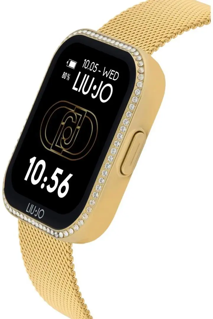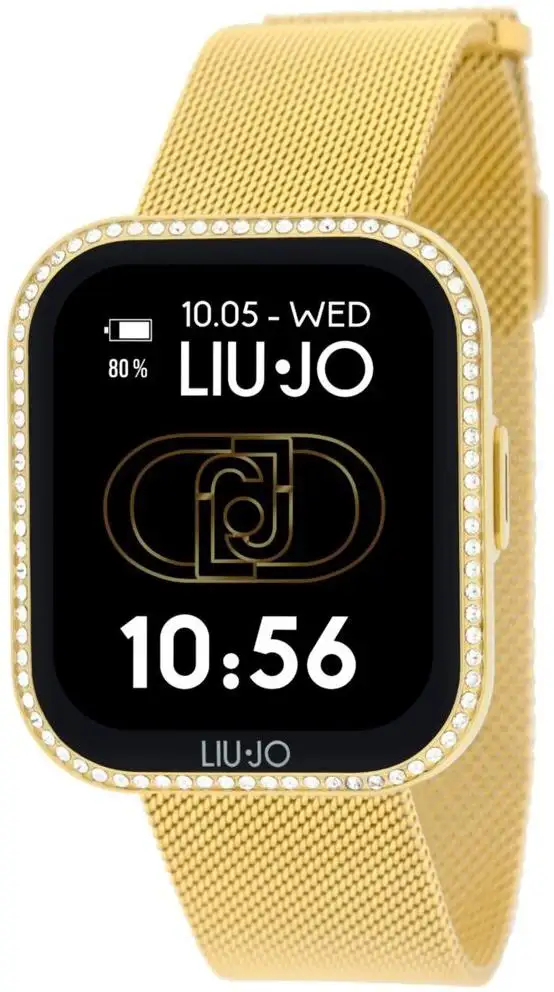 Italský Liu Jo Smartwatch Voice Slim SWLJ203 to je obdélníkové hliníkové pouzdro ve zlaté barvě ozdobené třpytivými zirkony. Výrobce doplnil svůj inteligentní časoměřič o ocelový milánský řemínek. Ocelový, pozlacený pásek je zapínán pomocí speciálního magnetu. Zepředu je vidět displej, který je plně dotykový. Barevný IPS displej je překryt hesalitovým sklem. Hodinky se připojí k systému iOS Apple a Android. Systém umožňuje personalizovat ciferník podle vlastního stylu a potřeb. Tento dámský časoměřič nabízí mnoho funkcí.