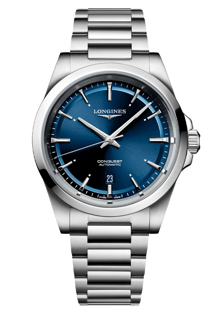Longines Conquest 2023 jsou sportovně-elegantní hodinky pro muže, kteří hledají jednoduché linie a hodinářské tradice. Módní stříbrná a modrá barva se bude hodit k různým typům bižuterních doplňků, elegantní obuvi nebo pásku. Longines L3.830.4.92.6 bude ideálním partnerem pro obchodní jednání i méně formální.
