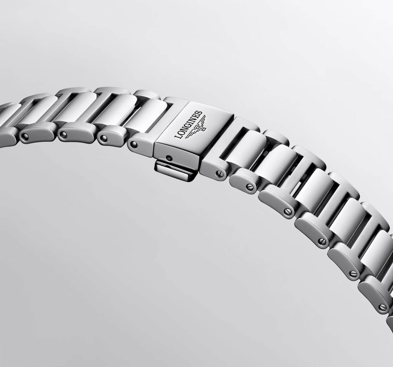 Pánské hodinky Longines Conquest 2023 L38354326 se skládají z kulaté pouzdro z nerezové oceli třídy 316L, velikost 42 mm. Stříbrné pouzdro je utěsněno až na 100 metrů , což vám umožňuje plavat s časovačem na zápěstí, aniž byste se museli obávat jeho poškození. Na pravé straně pouzdra je šroubovací korunka a funkční tlačítka, která se snadno používají díky drážkám. Na očka pouzdra je připevněn elegantní náramek z plných ocelových článků. Náramek má bezpečné a pohodlné motýlkové zapínání.