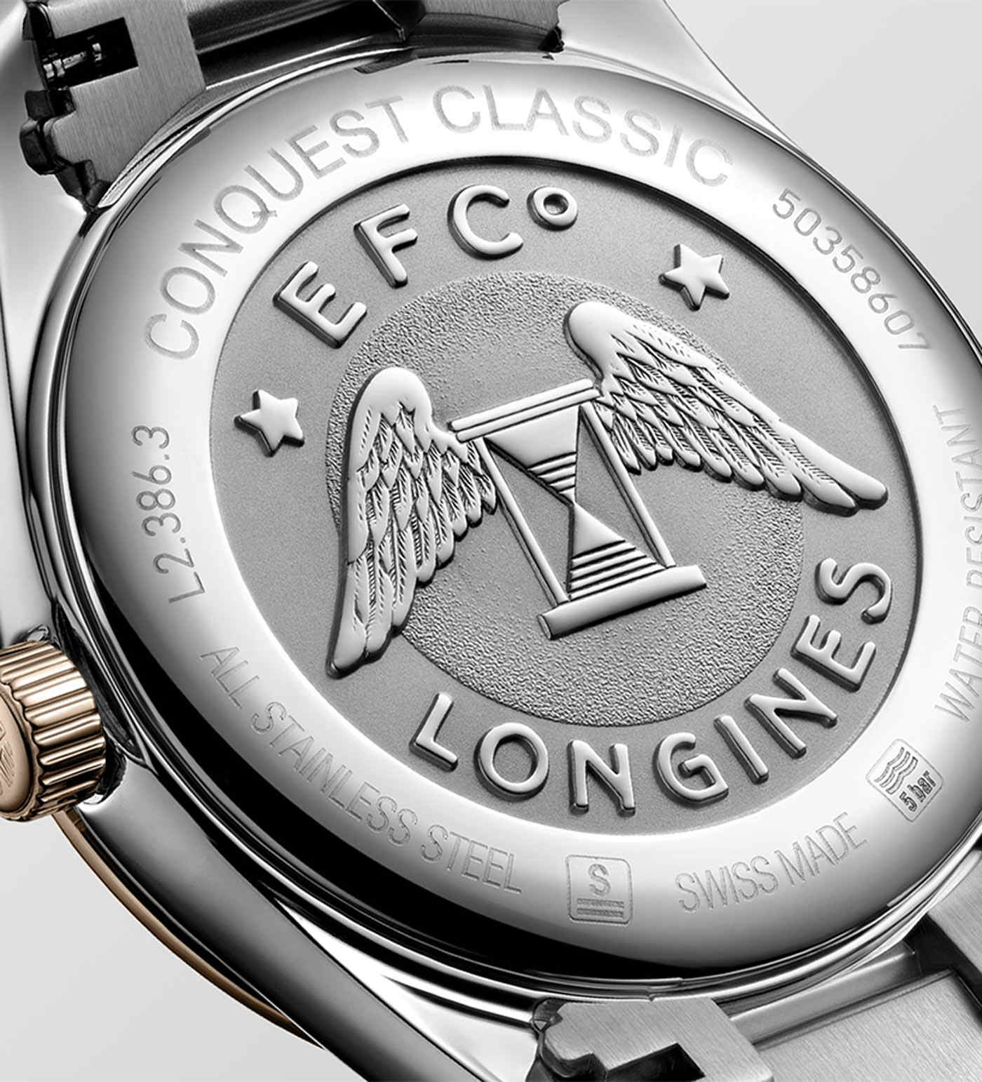 Dámské hodinky Longines Conquest Classic Lady L2.386.3.92.7 představují kvintesenci sportovní elegance. V souladu s hodnotami značky, kterými jsou elegance, tradice a výkon, byly vytvořeny dámské hodinky, které tyto vlastnosti zahrnují. Kulaté pouzdro o průměru 34mm s PVD růžově pozlacenými prvky, které najdeme i na elegantním náramku. Design hodinek se ideálně hodí ke každodennímu, sportovnímu i elegantnímu outfitu. Longines Conquest Classic jsou všestranné hodinky pro každou příležitost. Antireflexní sklo odolné proti poškrábání chrání modrý ciferník s pozlacenými indexy a ručičkami a dodává čitelnost. Přesný čas měří quartzový Machineek, napájený baterií s funkcí EOL . Když se baterie vybije, sekundová ručička poskočí každé 4 sekundy, aby naznačila, že je čas ji vyměnit. Nechte baterii vyměnit pouze v autorizovaném servisu Longines - Doliński Watch Service.