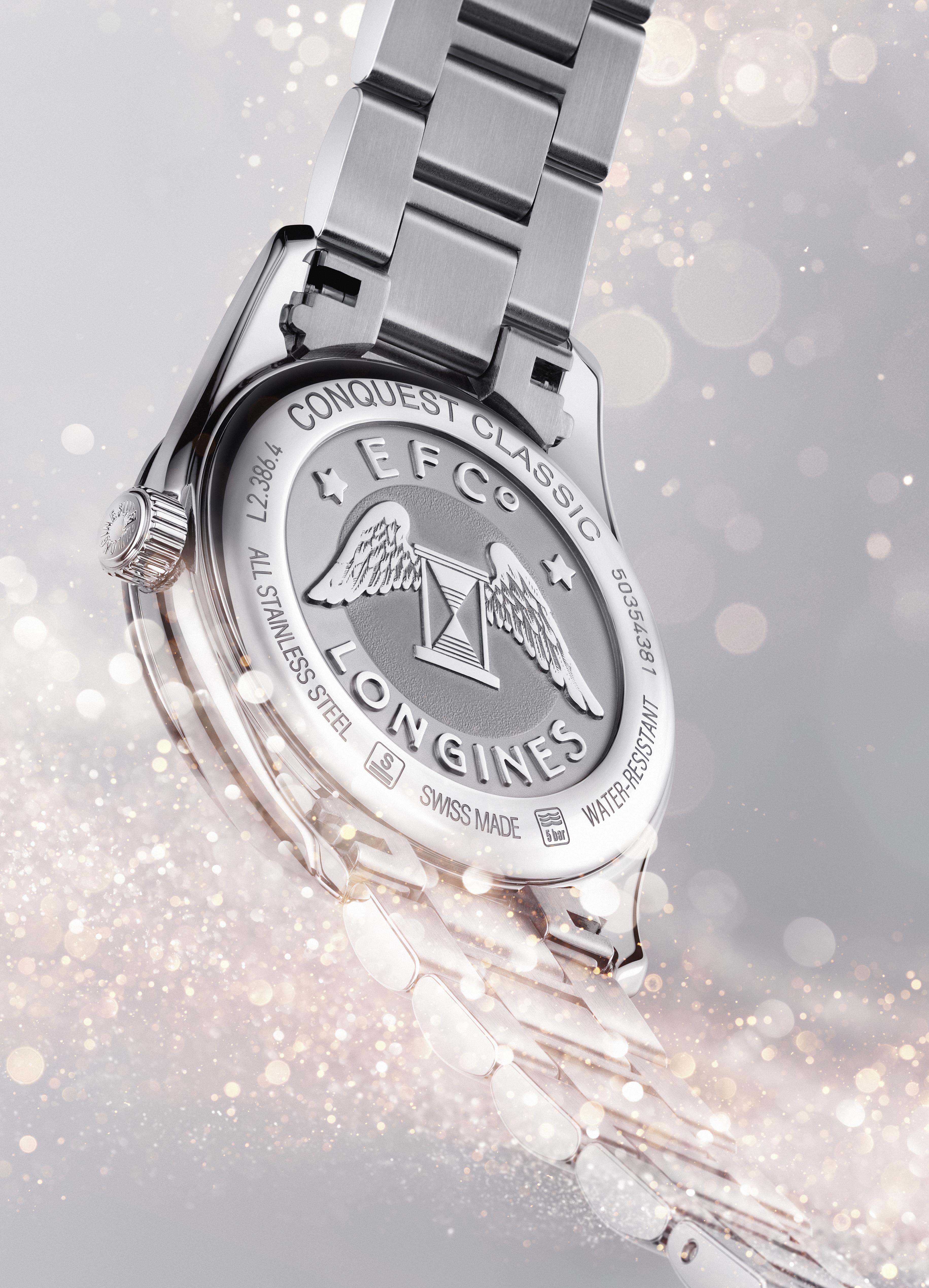 Dámské hodinky Longines Conquest Classic Lady L2.386.4.87.6 představují kvintesenci sportovní elegance. V souladu s hodnotami značky, kterými jsou elegance, tradice a výkon, byly vytvořeny dámské hodinky, které tyto vlastnosti zahrnují. 34mm leštěné kulaté pouzdro s vysokým leskem se vyznačuje tenkými a elegantními očky pouzdra, které drží náramek s matnými detaily uprostřed a leštěnými okraji. Design hodinek se ideálně hodí ke každodennímu, sportovnímu i elegantnímu outfitu. Longines Conquest Classic jsou všestranné hodinky pro každou příležitost. Antireflexní sklo odolné proti poškrábání chrání perleťový ciferník a dodává čitelnost. 11 diamantů 0,055 karátu na místě indexu dodává úžasnou brilanci. Přesný čas měří quartzový Machineek, napájený baterií s funkcí EOL . Když je baterie vybitá, sekundová ručička každé 4 sekundy poskočí, abyste věděli, že je čas ji vyměnit. Nechte baterii vyměnit pouze v autorizovaném servisu Longines - Doliński Watch Service.