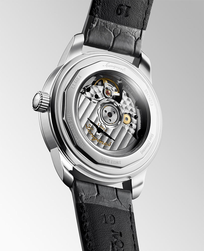 Po technické stránce hodinky Longines s koženým řemínkem využívají automatický strojek kalibr L896.5, který nabízí rezervu chodu až 72 hodin. Použití silikonového vlasu v úniku zaručuje odolnost vůči magnetickým polím a vyšším teplotám. Moderní mechanická řešení jdou ruku v ruce s důrazem na detail, jako jsou ženevské pruhy na rotoru nebo perleťování na kobylkách. Strojek, jehož činnost lze pozorovat na zadní straně pouzdra, je opravdovým hodinářským mistrovským dílem, které hypnotizuje prací každého prvku.