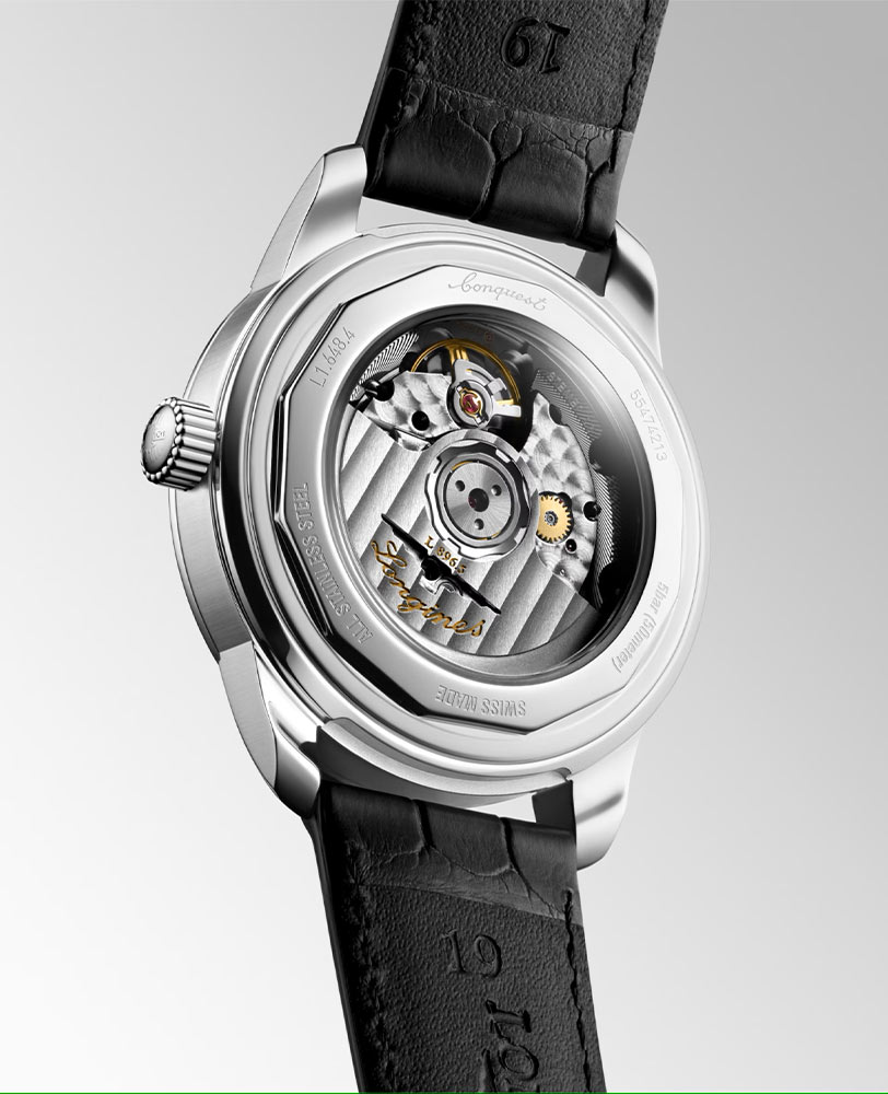 Po technické stránce hodinky Longines s koženým řemínkem využívají automatický strojek kalibr L896.5, který nabízí rezervu chodu až 72 hodin. Použití silikonového vlasu v úniku zaručuje odolnost vůči magnetickým polím a vyšším teplotám. Moderní mechanická řešení jdou ruku v ruce s důrazem na detail, jako jsou ženevské pruhy na rotoru nebo perleťování na kobylkách. Strojek, jehož činnost lze pozorovat na zadní straně pouzdra, je opravdovým hodinářským mistrovským dílem, které hypnotizuje prací každého prvku.