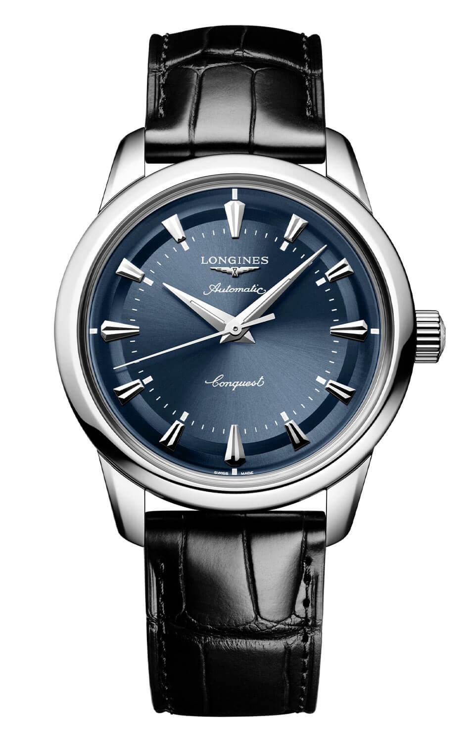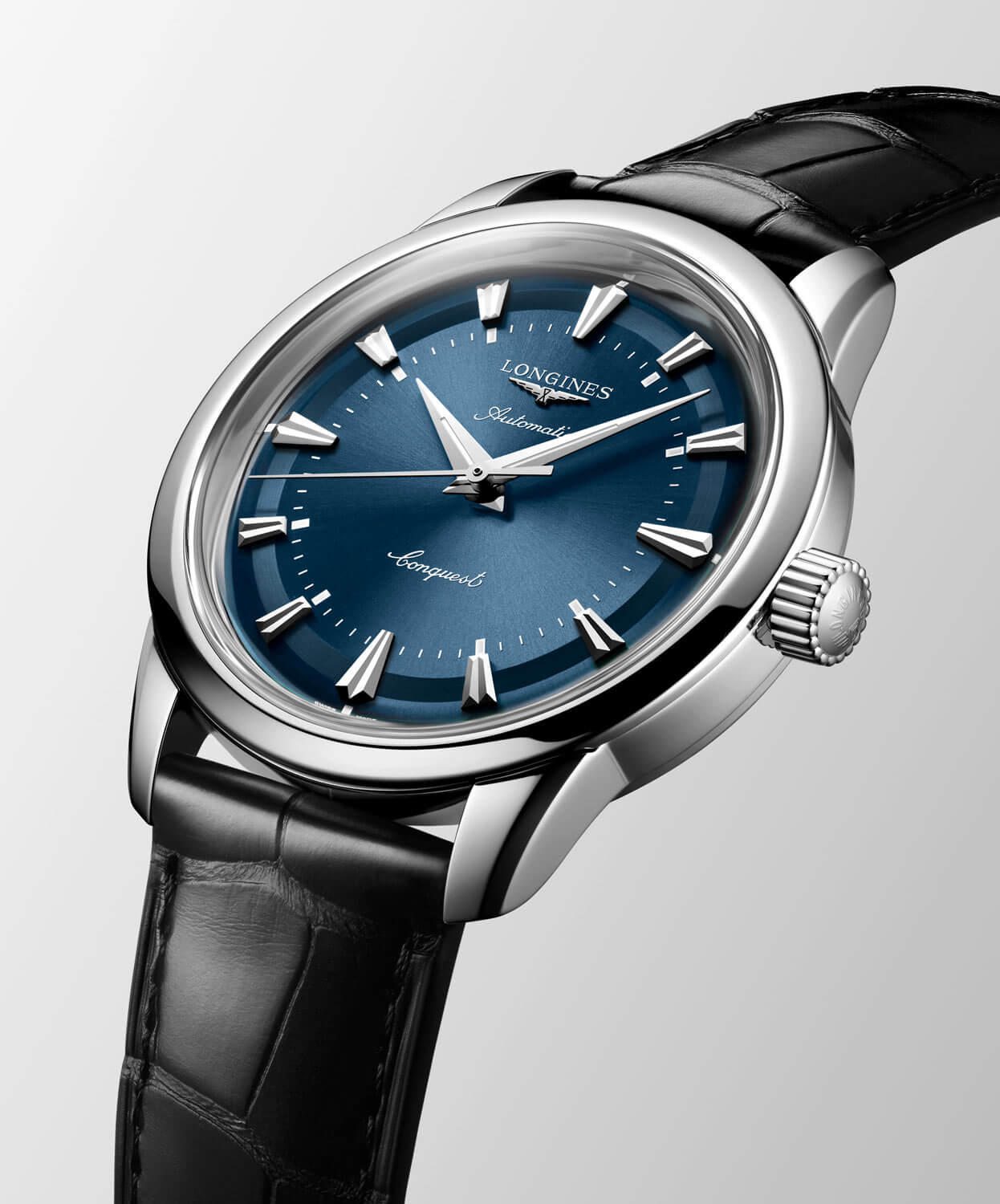 Modrý ciferník s efektem sunburst vyzařuje klid a distingvovanost. Pozlacené ručky typu dauphine a aplikované indexy ve tvaru kuželů jsou pokryty růžově zlatou vrstvou a vytvářejí ušlechtilý kontrast s podkladem. Charakteristické logo okřídlených přesýpacích hodin a jemné rozmístění prvků věrně odkazují na archivní návrhy značky. Pod povrchem ciferníku pracuje strojek Longines L888 – švýcarský automatický kalibr se 72hodinovou rezervou chodu a antimagnetickou vlásenkovou pružinou, která zajišťuje stabilitu chodu v běžném provozu. Longines Automatic L1.649.4.92.2 na koženém řemínku je víc než jen hodinky – je to konzistentní příběh o tradici, stylu a spolehlivé přesnosti.