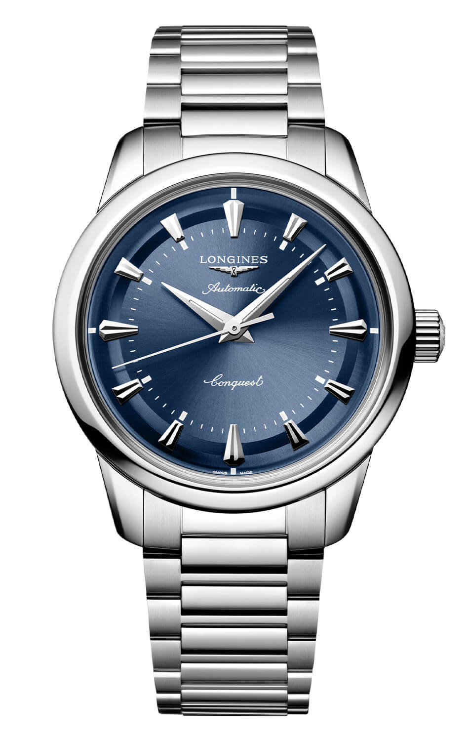 Modrý ciferník s efektem sunburst vyzařuje klid a distingvovanost. Pozlacené ručky typu dauphine a aplikované indexy ve tvaru kuželů jsou pokryty růžově zlatou vrstvou a vytvářejí ušlechtilý kontrast s podkladem. Charakteristické logo okřídlených přesýpacích hodin a jemné rozmístění prvků věrně odkazují na archivní návrhy značky. Pod povrchem ciferníku pracuje strojek Longines L888 – švýcarský automatický kalibr se 72hodinovou rezervou chodu a antimagnetickou vlásenkovou pružinou, která zajišťuje stabilitu chodu v běžném provozu. Longines Automatic L1.649.4.92.6 na náramku je víc než jen hodinky – je to konzistentní příběh o tradici, stylu a spolehlivé přesnosti.