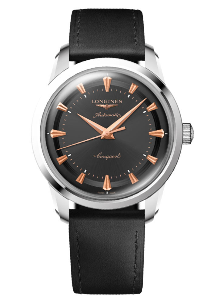 Retro doteky jsou bezesporu použité logo okřídlených přesýpacích hodin, slova Automatic a Conquest na číselníku. Doprovázejí je růžově pozlacené ostré ručičky a indexy – vše kryje tvrdé a těžko poškrábatelné safírové sklo. Design číselníku těchto elegantních hodinek Longines je minimalistický, takže je snadné odečítat čas. Mezi ciferníkem a zadním pouzdrem hodinek Longines Conquest Heritage je švýcarský automatický strojek poháněný pohybem zápěstí. Longines kalibr L888 je unikátní strojek s nadprůměrnou rezervou chodu cca 72 hodin. Důležitou a významnou předností mechanismu je antimagnetická vlásenka, která kromě potírání magnetického pole chrání čip L888 i před vyššími teplotami. Kalibr L888 byl postaven na základě spolehlivého strojku ETA A31.L11 Swiss Made.