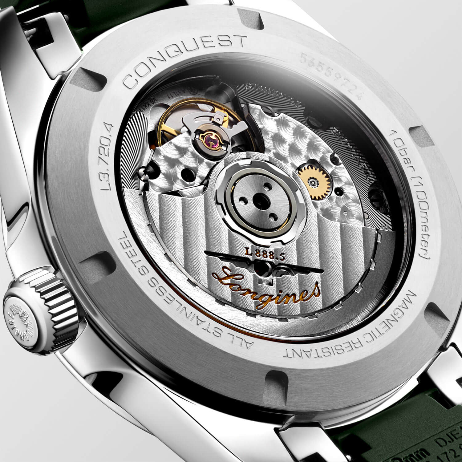 Uvnitř pouzdra pracuje švýcarský automatický kalibr L888, známý svou vynikající přesností, spolehlivostí a antimagnetickými vlastnostmi díky speciální silikonové pružině. Toto technologicky pokročilé řešení zajišťuje dlouhodobé a přesné fungování hodinek, což je činí ideálním výběrem jak pro milovníky sportovní elegance, tak pro ty, kteří hledají přesný časoměr pro každodenní použití. Longines se stará o to, aby každý prvek hodinek splňoval nejvyšší standardy kvality, což je jeden z pilířů renomé této značky. Použití kalibru L888 také zajišťuje komfort používání díky plynulému a přesnému zobrazování času.