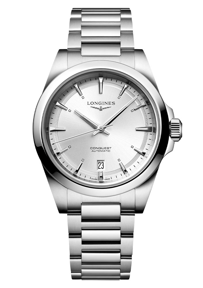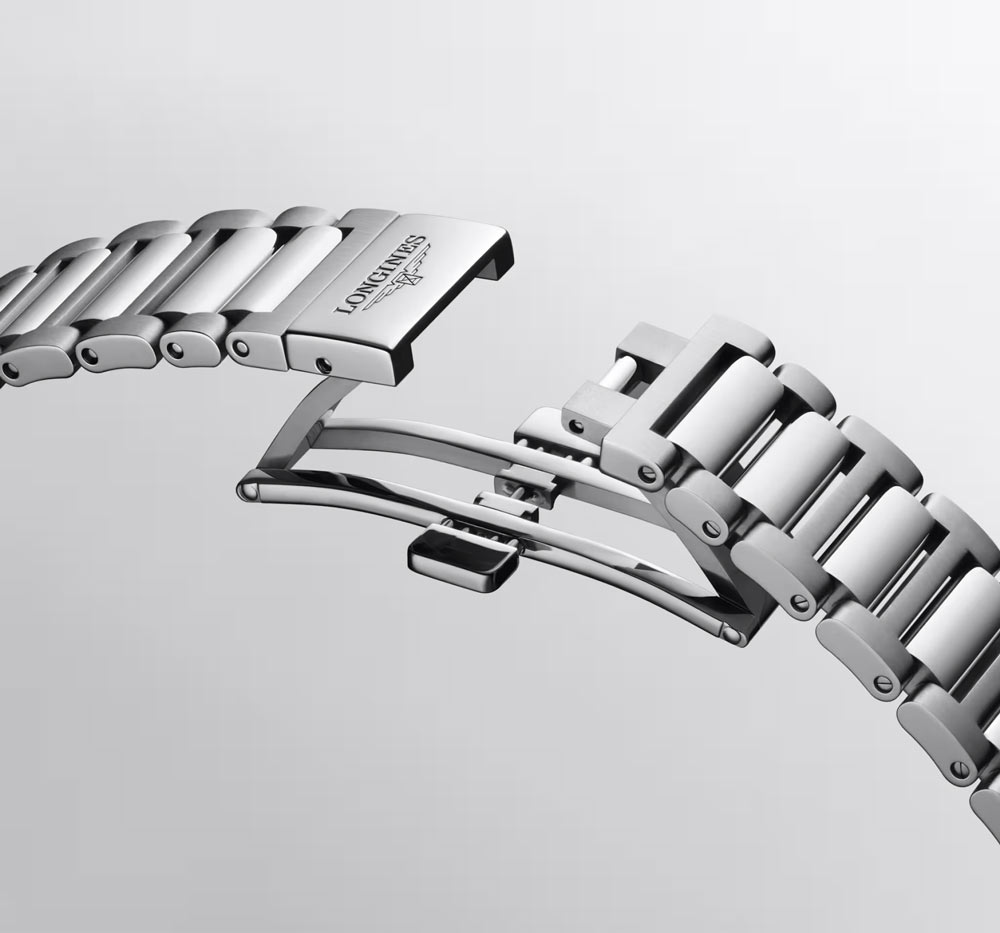 Mužské hodinky Longines Conquest Gent L37204726 jsou nabízeny v rozměru 38 mm. Solidní konstrukce tohoto sportovního modelu zajišťuje vodotěsnost do hloubky 100 metrů. Hodinky Longines mohou doprovázet svého majitele při plavání, aniž by došlo k poškození mechanismu. Obudovu uzavírá našroubovaný víčko s průhledným safírovým sklem na jeho zadní straně. Značka Longines své hodinky doplnila o nerezový náramek ve stříbrném provedení. Stavba z plných článků nerezového pásu je vybavena motýlkovým zapínáním, které poskytuje pohodlí a komfort při nošení.