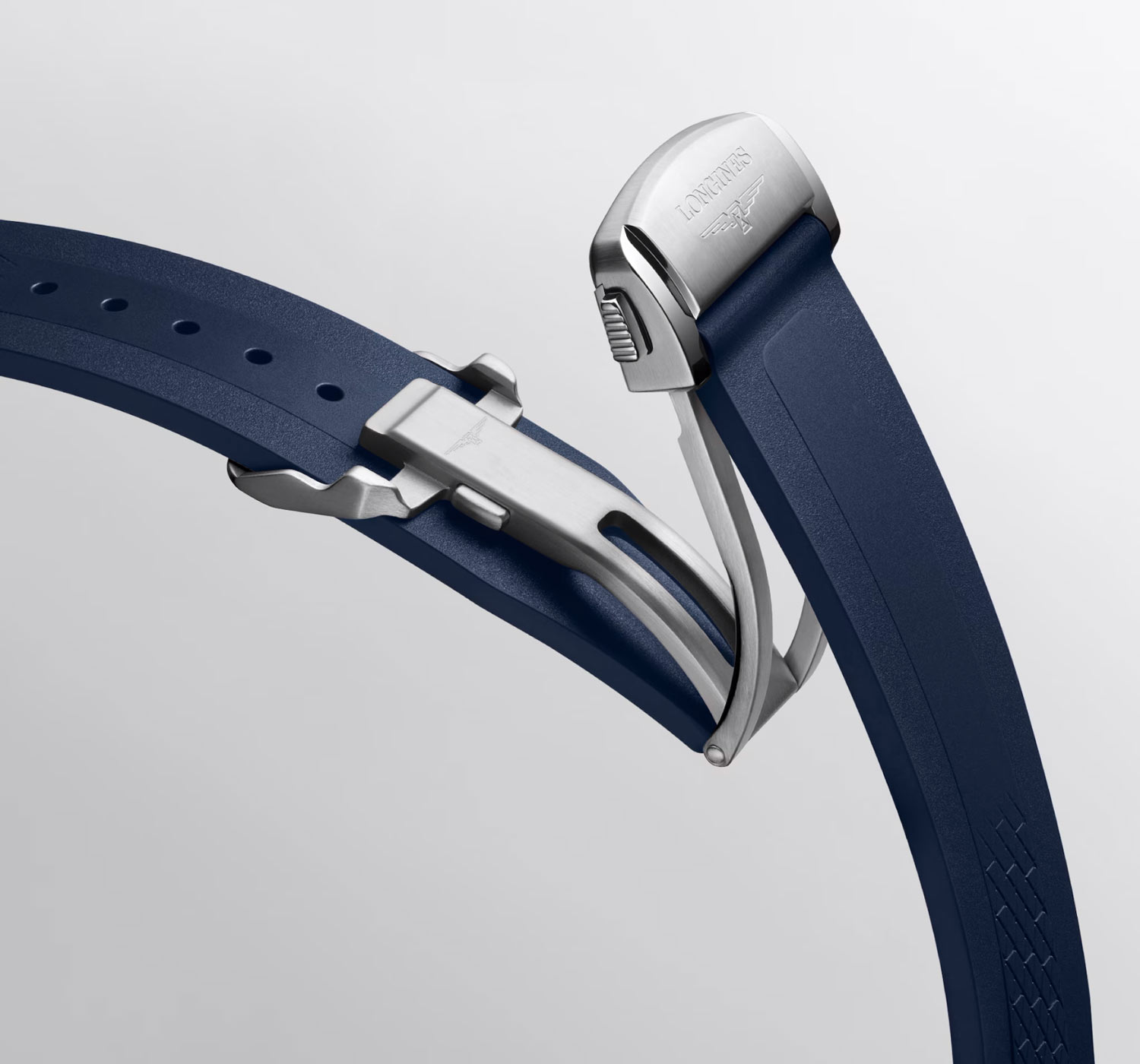 Hodinky Longines jsou uzavřeny ve 42milimetrovém ocelovém pouzdře, které je odolné vůči různým druhům koroze. S hodinkami Longines lze plavat – jejich konstrukce je vodotěsná do hloubky 100 metrů. Na pravé straně pouzdra jsou umístěna funkční tlačítka chronografu a snadno ovladatelná korunka, která je šroubovací. Zadní strana obsahuje šroubovací dýnko s průhledným okénkem, které ukazuje mechanismus Longines L898.5. Hodinky jsou doplněny modrým gumovým páskem, který podtrhuje moderní a sportovní styl tohoto modelu.