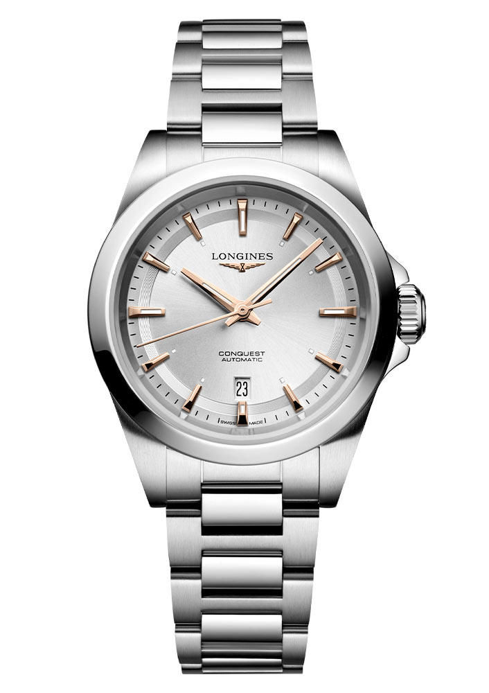 U příležitosti 70. výročí uvedení řady Conquest byla tato kolekce rozšířena o nové verze, které kombinují sportovní eleganci, nadčasový design a pokročilá řešení, ideální pro každodenní použití. Jedním z nich jsou dámské hodinky Longines Conquest L3.320.4.72.6. Tento časoměr má slunečně zářící stříbrný číselník. Indexy na číselníku a rhodiované a leštěné hodinové a minutové ručky jsou pokryty vrstvou Super-LumiNova®, která zajišťuje optimální čitelnost v každou denní dobu. Bezchybný odečet času podporuje odolné safírové sklo s vícenásobnou antireflexní vrstvou na obou stranách.