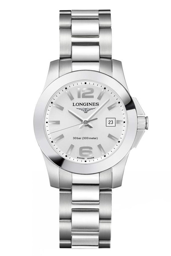 Dámské hodinky Longines Conquest Lady L3.376.4.76.6 jsou ztělesněním sportovní elegance. Zvláštní pozornost přitahuje sportovní pouzdro 29,50 mm vyrobené z nerezové oceli. Šroubovací zadní část pouzdra a korunka utěsňují hodinky až do 30 barů, což jim umožňuje jít i pod vodu. Přehledný ciferník a velké ručičky dodávají pevný, výrazný design. Model Conquest Lady se vyznačuje vysokou úrovní povrchové úpravy a velmi vysokou odolností. Tyto jedinečné hodinky Longines se skvěle hodí ke sportovnímu outfitu i večernímu elegantnímu outfitu.