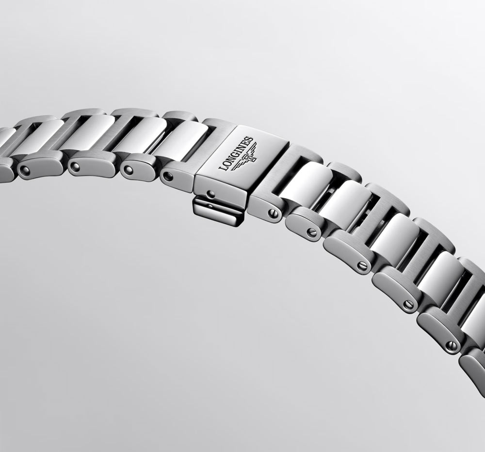 Dámské hodinky Longines Conquest Lady L34305026 jsou nabízeny ve skutečně ženské velikosti 34 mm. Pevná konstrukce tohoto sportovního modelu zajišťuje vodotěsnost do hloubky 100 metrů. Hodinky Longines mohou doprovázet svou majitelku při plavání, aniž by došlo k poškození mechanismu. Pouzdro uzavírá našroubovaný zadní kryt s průhledným safírovým sklem. Značka Longines své hodinky osadila pevnými ocelovými články náramku. Motýlkové zapínání náramku zajišťuje pohodlí a komfort při nošení.