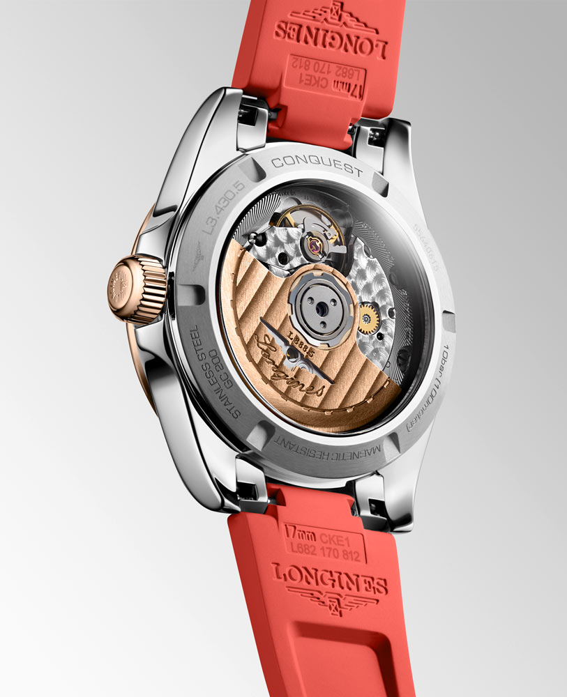 Automatické hodinky Longines jsou poháněny pohybem zápěstí. Uvnitř pouzdra je instalován švýcarský mechanismus Longines kalibr L888, který imponuje svou přesností a konstrukcí. Tento složitý strojek nabízí nadprůměrnou rezervu chodu až 72 hodin. Výrobce vybavil mechanismus křemíkovou spirálou, která odolává magnetickým polím a vyšším teplotám. Jeho výjimečnou práci lze obdivovat přes sklo na zadní straně pouzdra. Dámské hodinky Longines s gumovým řemínkem jsou luxusním produktem z vybrané kategorie. Originální design spojuje elegantní hodinářské umění s duchem sportu. Automatické hodinky Longines jsou skvělou volbou k doplnění dámského šatníku. Moderní barevnost se hodí ke sportovnímu, každodennímu i výjimečnému outfitu.