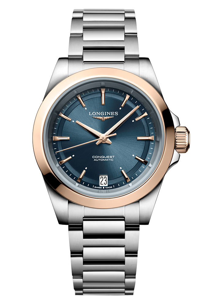 U příležitosti 70. výročí uvedení řady Conquest byla tato řada obohacena o nové verze, které spojují sportovní šmrnc, nadčasový design a pokročilá řešení, ideální pro každodenní použití. Jedním z nich jsou dámské hodinky Longines Conquest Lady L3.430.5.92.6, které se vyznačují elegantním modrým ciferníkem s rybinovým vzorem. Tyto hodinky mají jedenáct aplikovaných zlatých hodinových indexů a okénko s datem na šesté hodině. Hodinové značky a zlaté, leštěné hodinové a minutové ručičky jsou pokryty vrstvou Super-LumiNova®, která zajišťuje optimální čitelnost kdykoliv během dne. Dokonalé čtení podporuje safírové sklo odolné proti poškrábání s vícevrstvým antireflexním povlakem na obou stranách.