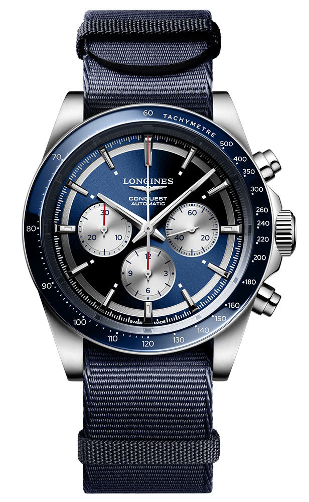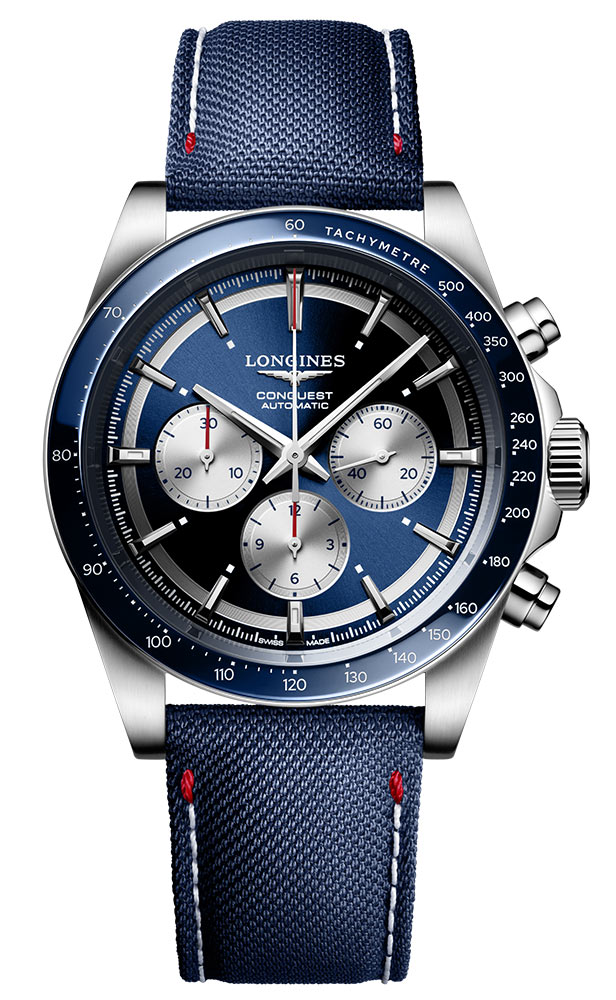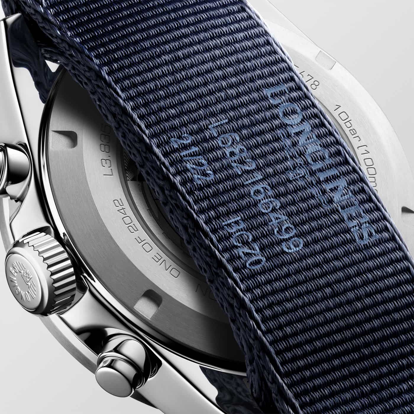 Celek doplňují detaily, jako jsou aplikované hodinové fixy a ručičky potažené Super-LumiNova® pro vynikající čitelnost i za špatných světelných podmínek. Unikátní modrý látkový řemínek zdobený bílým prošíváním a červeným prošíváním je elegantním odkazem na barvy ručiček hodinek. Možnost nastavení délky řemínku a přídavný řemínek ve stylu NATO ve stejné barvě navíc zajistí, že hodinky v dárkové sadě Longines L3.835.4.91.2 budou dokonale vyhovovat každé situaci a vkusu.