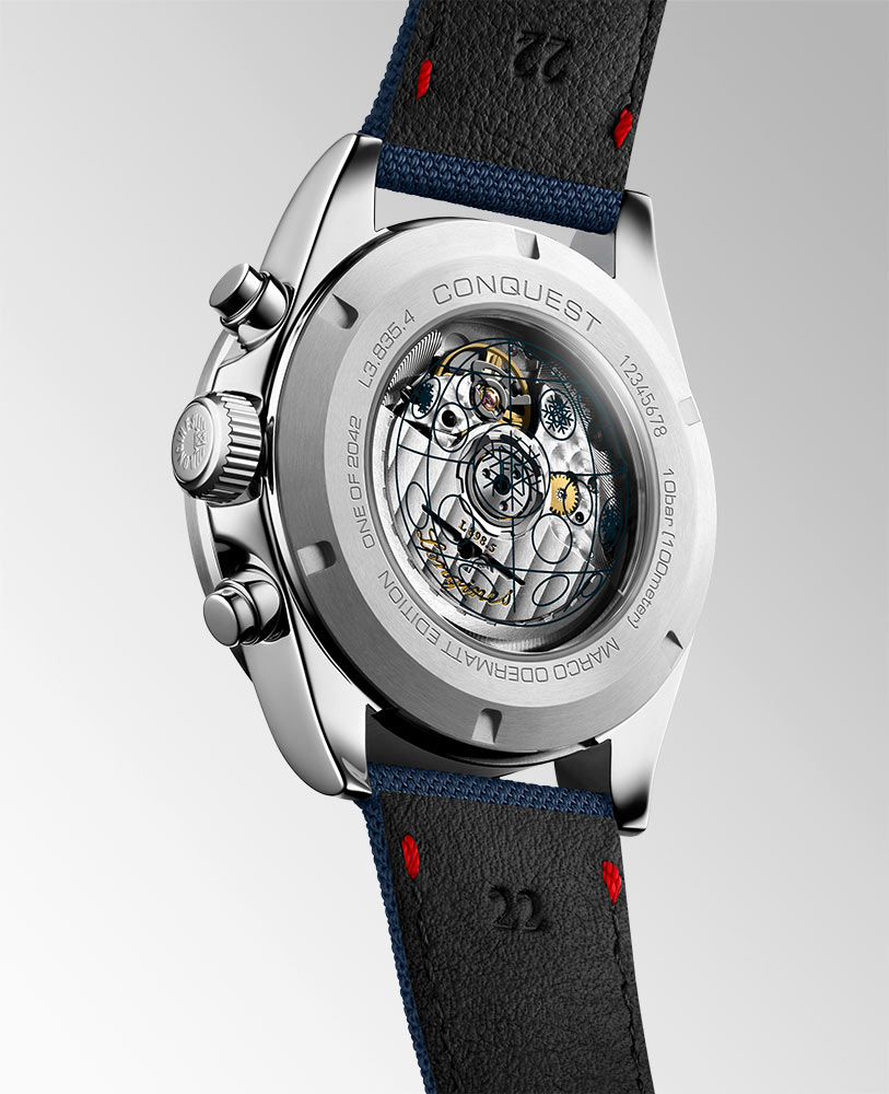 Limitované hodinky Longines Conquest Marco Odermatt jsou skutečným uměleckým dílem, které v sobě skrývá ducha sportu a elegance. Jeho 42mm pouzdro vyzařuje pevnost a stylový design a zároveň zdůrazňuje blízký vztah Longines k alpskému lyžování. Neobvyklé detaily, jako je rytina „ONE OF 2042“ na zadní straně pouzdra, připomínající Marcoův rekord, dělají z těchto pánských hodinek s chronografem jedinečný suvenýr pro sběratele a nadšence značky. Za pozornost stojí také inovativní technická řešení použitá v hodinkách, jako je speciálně pro Longines vytvořený kalibr L898.5, který zaručuje přesné měření času. Křišťálová koule, symbol Světového poháru v alpském lyžování, je reprodukována na skleněném zadním krytu hodinek, což jim dodává jedinečný charakter. Zadní strana pouzdra je navíc skleněná a vodotěsná do 100 metrů, stupnice tachymetru z modré keramiky a rozmanitost barev na číselníku dělají z automatických chronografů Longines Conquest Automatic nejen měření času, ale také se stávají výrazem stylu a osobnost.