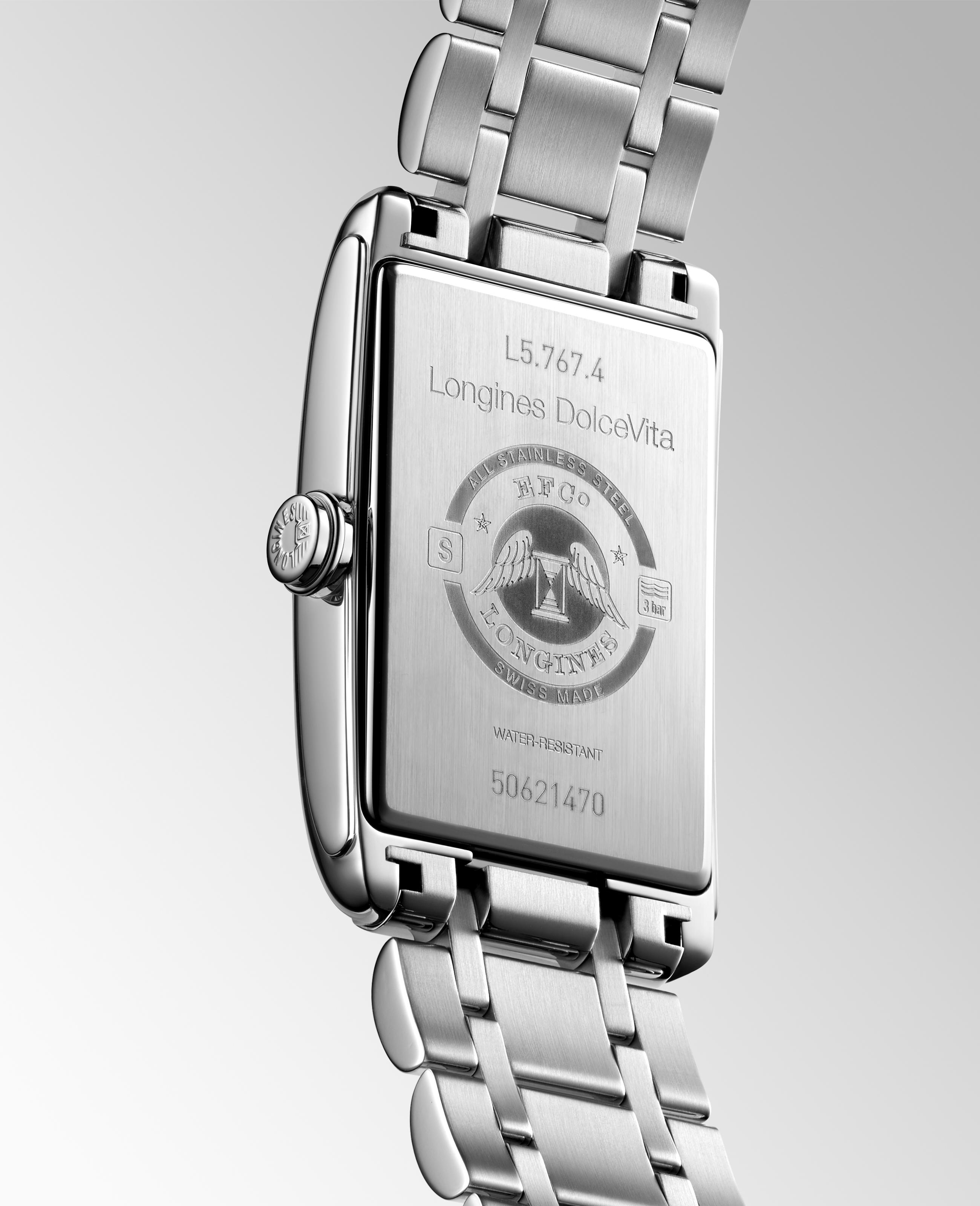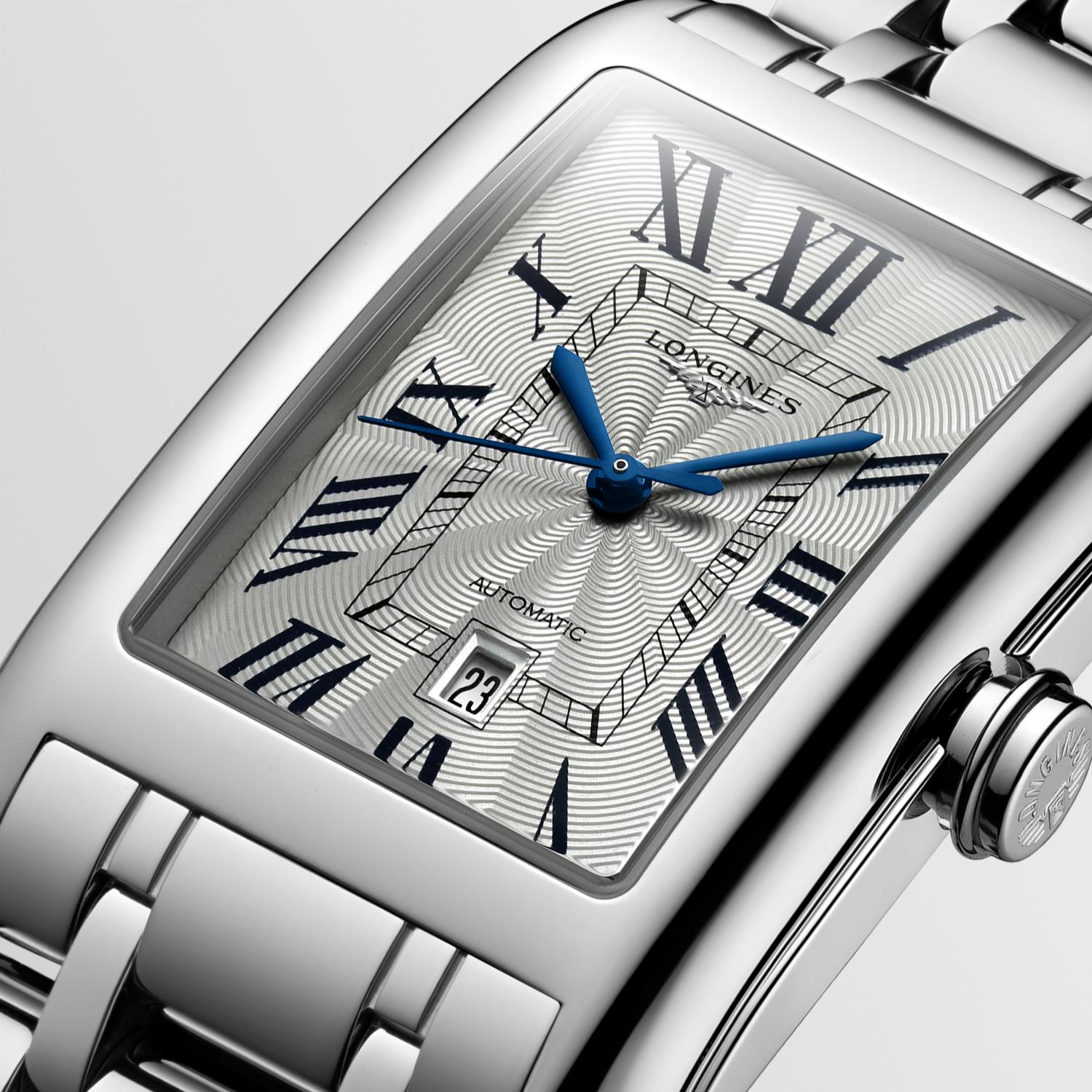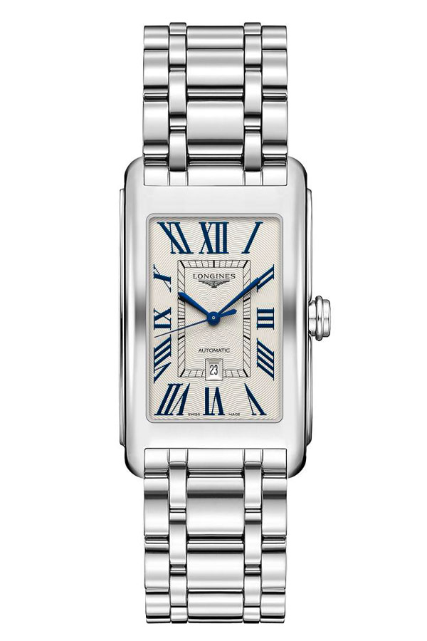 Pánské hodinky Longines DolceVita Automatic L5.767.4.71.6 v elegantním nerezovém pouzdře o rozměrech 28,20 x 47 mm . Obdélníkové Longines spojují čistotu a eleganci modelu z 30. let s designem 50. let v precizně zpracovaných detailech. Propracovanost, rafinovanost, jemnost, odlišnost jsou pojmy adekvátní jedinečnému duchu této řady. Designéři a hodináři Longines , inspirovaní čistotou geometrických linií, je důsledně převádějí do světa estetické dokonalosti. Krásně zdobený ciferník stříbrné barvy s modrými římskými číslicemi a ručičkami zaujme každého muže. Uvnitř Longines DolceVita Automatic je spolehlivý automatický Machineek ETA 2000-1/A20.L01 s funkcí data v 6 hodin.
