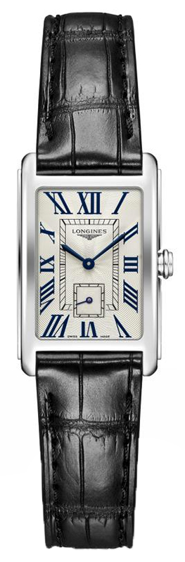 Nadčasový Longines DolceVita L5.255.4.71.0 se vyznačuje harmonickým stříbrným a černým tónem, který je elegantně doprovázen malovanými římskými číslicemi, flinským vzorem na ciferníku, obdélníkovým ciferníkem s dílčími sekundami a jemnými modře leštěnými ocelovými ručičkami. Dámské hodinky Longines DolceVita jsou především tradiční elegancí plnou jemných a přesto pevných linií, odkazujících k italskému optimismu, lásce k potěšení a klidu.