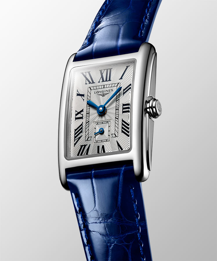 Nadčasový Longines DolceVita L5.255.4.71.7 se vyznačuje harmonickým stříbrno-modrým tónem, který je elegantně doprovázen malovanými římskými číslicemi, flinským vzorem na ciferníku, obdélníkovým subsekundovým ciferníkem a jemnými modře leštěnými ocelovými ručičkami. Dámské hodinky Longines DolceVita jsou především tradiční elegancí plnou jemných a přesto pevných linií, odkazujících k italskému optimismu, lásce k potěšení a klidu.