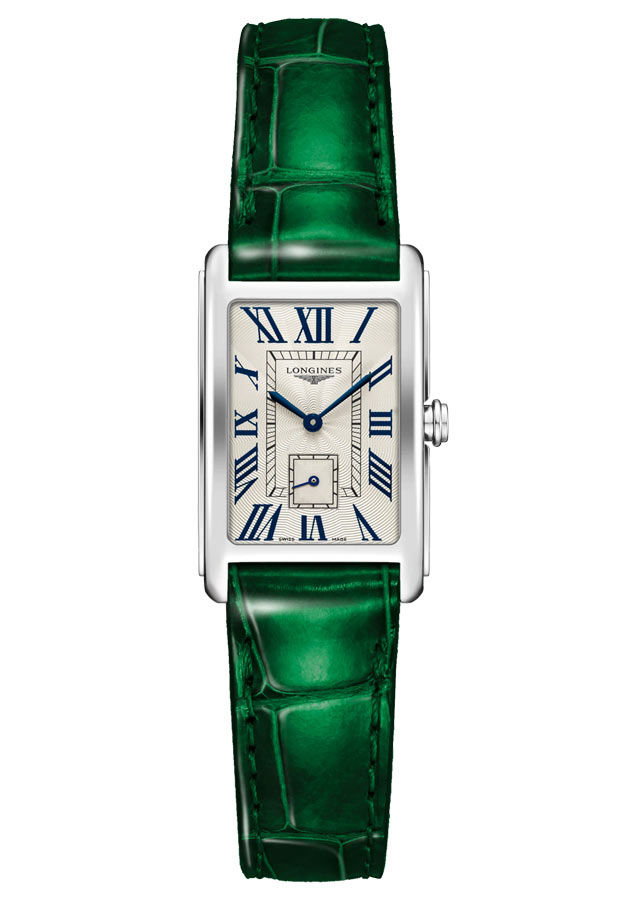 Nadčasový Longines DolceVita se vyznačuje romantickým stříbrno-zeleným tónem, který je elegantně doprovázen malovanými římskými číslicemi na číselníku, obdélníkovým subsekundovým číselníkem a jemnými modrými ručičkami. Dámské hodinky Longines DolceVita jsou především tradiční elegancí, plnou jemných a přesto pevných linií, odkazujících k italskému optimismu, lásce k potěšení a klidu.