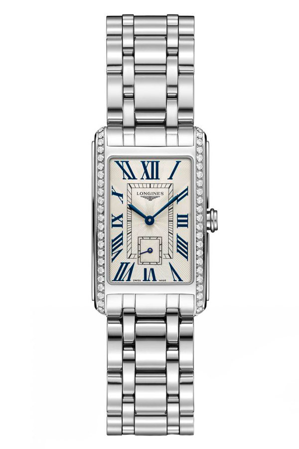Od svého vzniku jsou dámské hodinky Longines DolceVita poctou tzv „sladkosti života“. Hodinky, které představujeme, jsou novinkou v kolekci DolceVita s jemným tvarem pouzdra. Hodinky jsou vyrobeny z nejkvalitnější nerezové oceli. Pouzdro na okrajích zdobí 46 diamantů Top Wesselton VVS, o celkové hmotnosti 0,552 ct. Rozměry pouzdra 20,50 x 32,00 plně zajišťují čitelnost číselníku. V případě hodinek DolceVita hodináři přibalili švýcarský quartz Machineek (ETA 980.153) napájený baterií. Mechanismus je vybaven systémem EOL, který signalizuje stav baterie, takže vás nepřekvapí vybitá baterie. Hodinky jsou nabízeny na jemně leštěném ocelovém náramku s bezpečnou motýlkovou sponou.