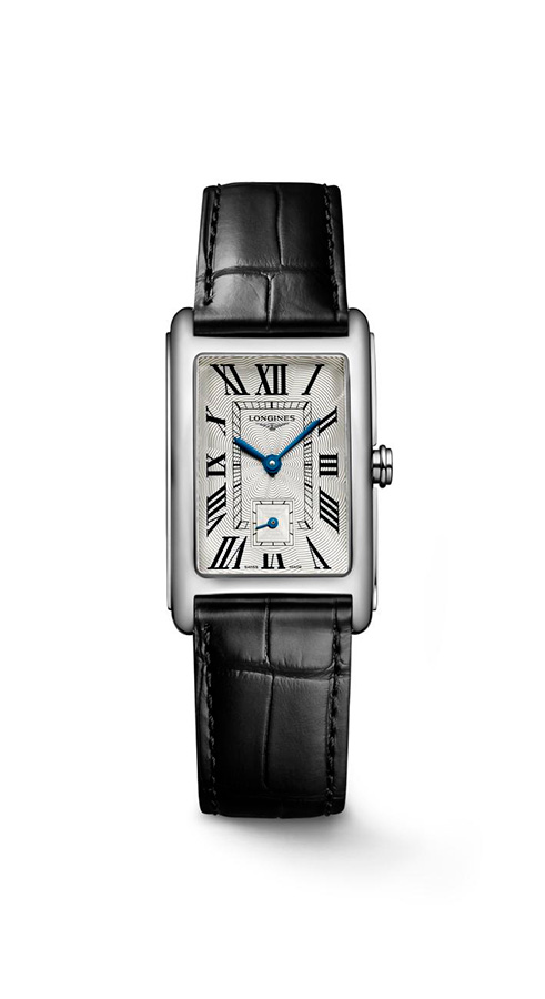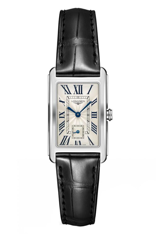 Jedinečné, dámské hodinky Longines DolceVita. Klasické pouzdro z nerezové oceli s mírně zaoblenými hranami. Krásný, krémově zbarvený ciferník s modrými ručičkami a indexy. Dobře čitelná vteřinová ručička umístěná nad 6. hodinou zvyšuje funkčnost časomíry. Třída voděodolnosti umožňuje jemné stříkání vody. Elegantní set je doplněn o klasický hnědý řemínek z aligátora. Hodinky kombinují švýcarskou funkčnost s klasickou elegancí, aby se hodily do moderního šatníku.