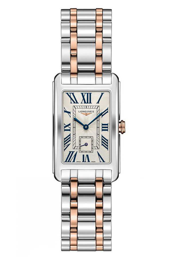 Dámské hodinky Longines DolceVita L5.512.5.71.7, ztělesňující dokonalou jednoduchost, rafinované linie Longines DolceVita z nich dělají objekt krásy v dokonalé formě. Tyto quartzové hodinky na baterie jsou módní a zároveň nenáročné. Je to klasika, která nikdy neztratí své kouzlo. Hodinky zaujmou svým vyváženým designem: dvě ručičky a vteřinová ručička nad polohou šestky jsou velmi dobře čitelné, zatímco nápadné plynulé linie pouzdra jim dodávají vznešený charakter. Hodinky Longines DolceVita jsou klenotem a elegantním zároveň. Prvky náramku jsou vyrobeny z 18karátového růžového zlata. Můžeme si být jisti, že hodinky zkrášlí zápěstí každé ženy. Elegantní, obdélníkové pouzdro o rozměrech 23 x 37 mm padne každému zápěstí.