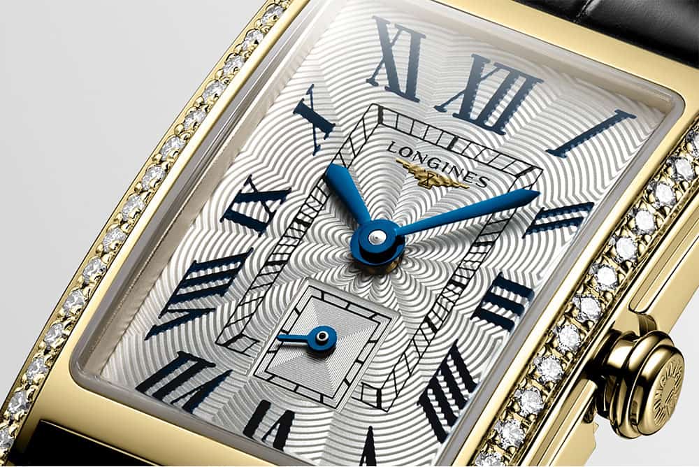 Dalším vrcholem hodinek Longines DolceVita je safírové sklíčko odolné proti poškrábání . Chrání jasný "flinqué " ciferník zdobený giloší. Vyznačuje se tradičními římskými číslicemi a stylovými a elegantními modře zbarvenými ocelovými ručičkami. Na šestou hodinu výrobce umístil malý druhý číselník. Pod ciferníkem je přesný švýcarský quartzový Machineek Longines L178 s funkcí End of Life . EOL je funkce, která informuje majitele o nutnosti výměny baterie. Sekundová ručka se bude pohybovat skokovým pohybem jednou za čtyři sekundy.