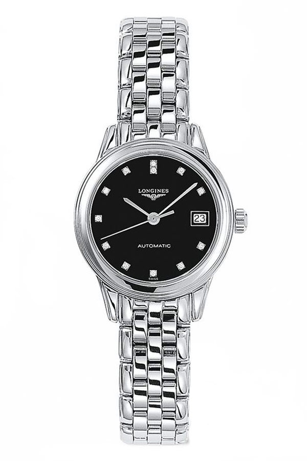 Dámské hodinky Longines Flagship Automatic L4.274.4.57.6 . Elegantní vlajková loď Longines s automatickým Machinekem. Díky dokonale hladkému pouzdru a pohodlnému hladkému náramku je nošení těchto hodinek čiré potěšení. Zadní strana skleněného pouzdra odhaluje automatický Machineek ETA 2000/1 nebo ETA A20.L01 v závislosti na dostupnosti z továrny Longines. Jiskru dodávají diamanty osazené na ciferníku.