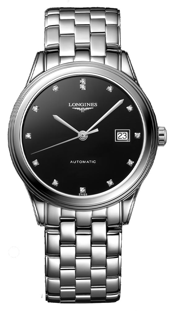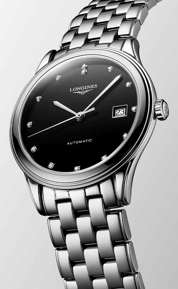 Pouzdro hodinek je vyrobeno z nerezové oceli o průměru 38,5 mm, díky čemuž se jedná o univerzální velikostní model. Hodinky jsou utěsněny na 30 metrů. Na leštěném černém ciferníku jsou hodinové indexy v podobě 13 diamantů 0,059 ct a datumové okénko s aktuálním dnem v měsíci na třetí pozici. Celý je chráněn safírovým sklem s vysokou odolností proti poškrábání a poškození. Hodinky Longines Flagship mají náramek z nerezové oceli pro pohodlné a bezpečné nošení na zápěstí. Náramek se snadno přizpůsobí a přizpůsobí velikosti zápěstí. Uvnitř pouzdra je automatický Machineek kalibr L888, který zaručuje přesné měření času a dlouhou rezervu chodu až 72 hodin.