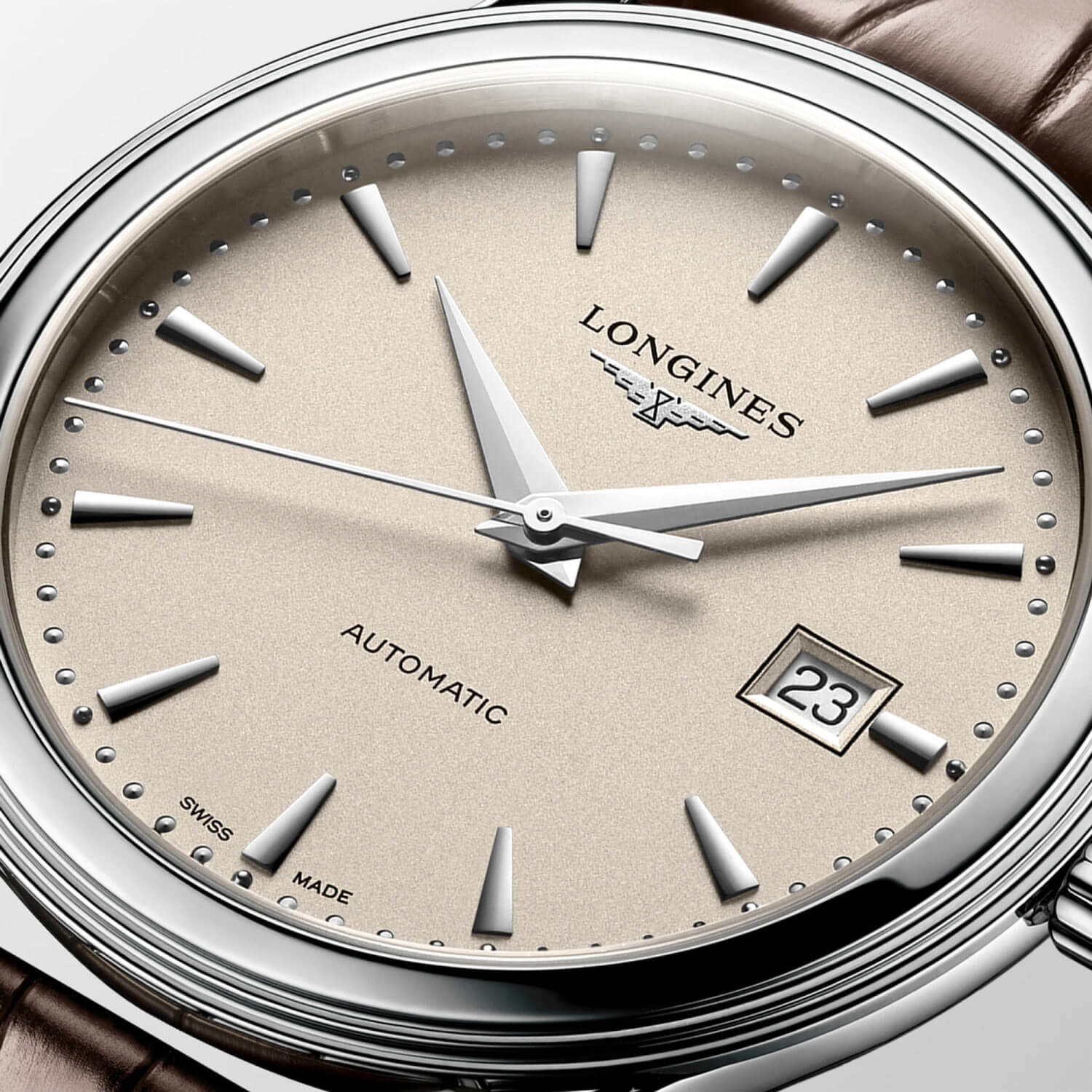 Klasické pánské hodinky Longines z historické kolekce Flagship uvedené na trh v roce 1957 . Dnes přichází tento nadčasový model Longines Flagship Automatic L4.984.4.79.2 v obnovené podobě. Díky stoletým zkušenostem s výrobou hodinek je Longines opakovaně průkopníkem technologického pokroku a dnes stále ukazuje stejný neochvějný závazek k inovacím. Neustálé hledání dokonalosti vedlo k vytvoření automatického Machineku L888 ETA A31.L01 se silikonovým balančním vlasem . Tento materiál je nejen lehký a odolný proti korozi, ale také necitlivý na běžné teplotní výkyvy a magnetická pole. Jeho jedinečné vlastnosti zvyšují přesnost práce a životnost hodinového Machineku, což umožňuje společnosti Longines nabídnout na tyto hodinky záruku 5 let.