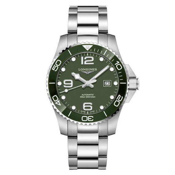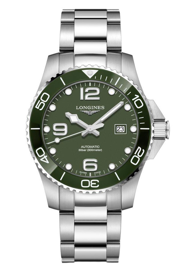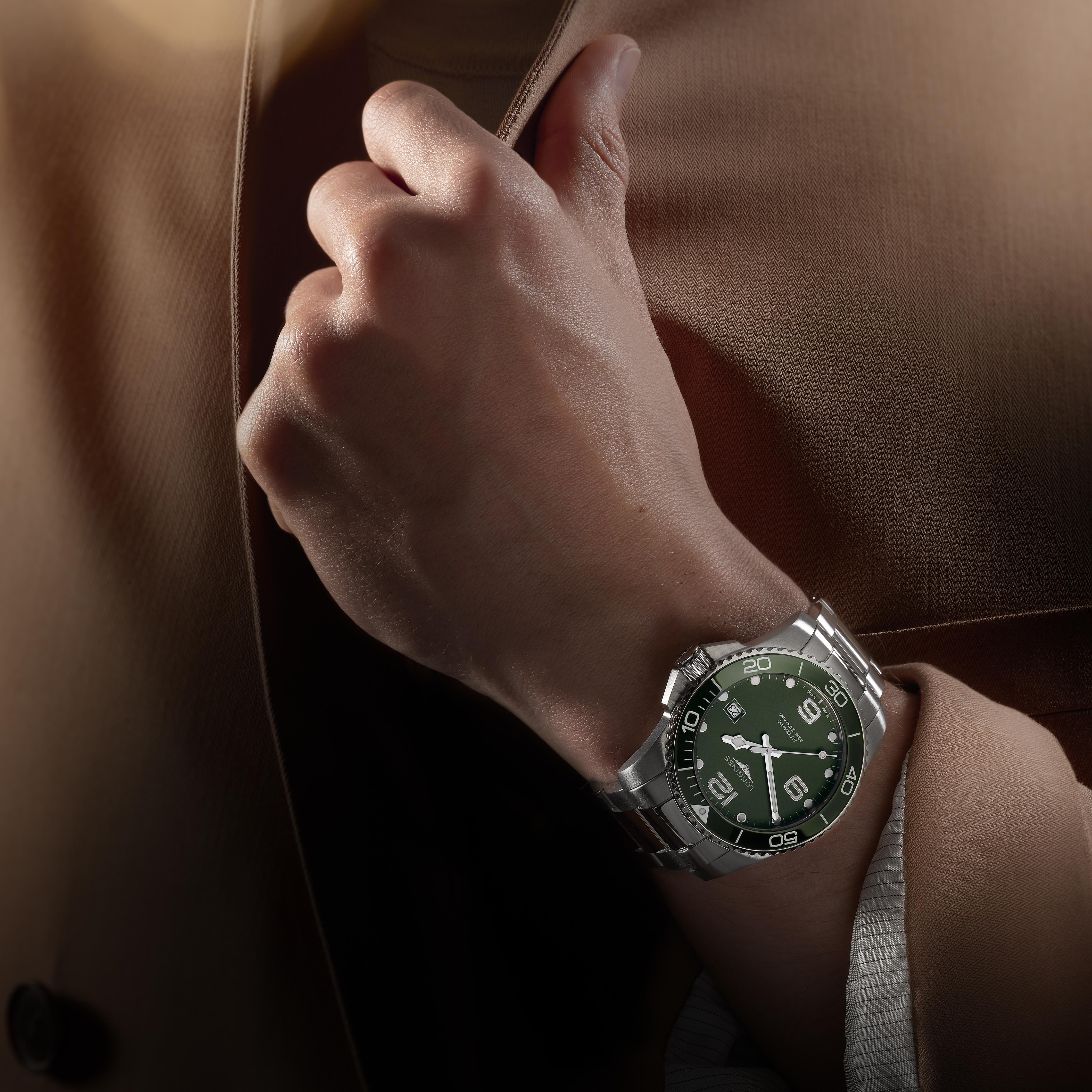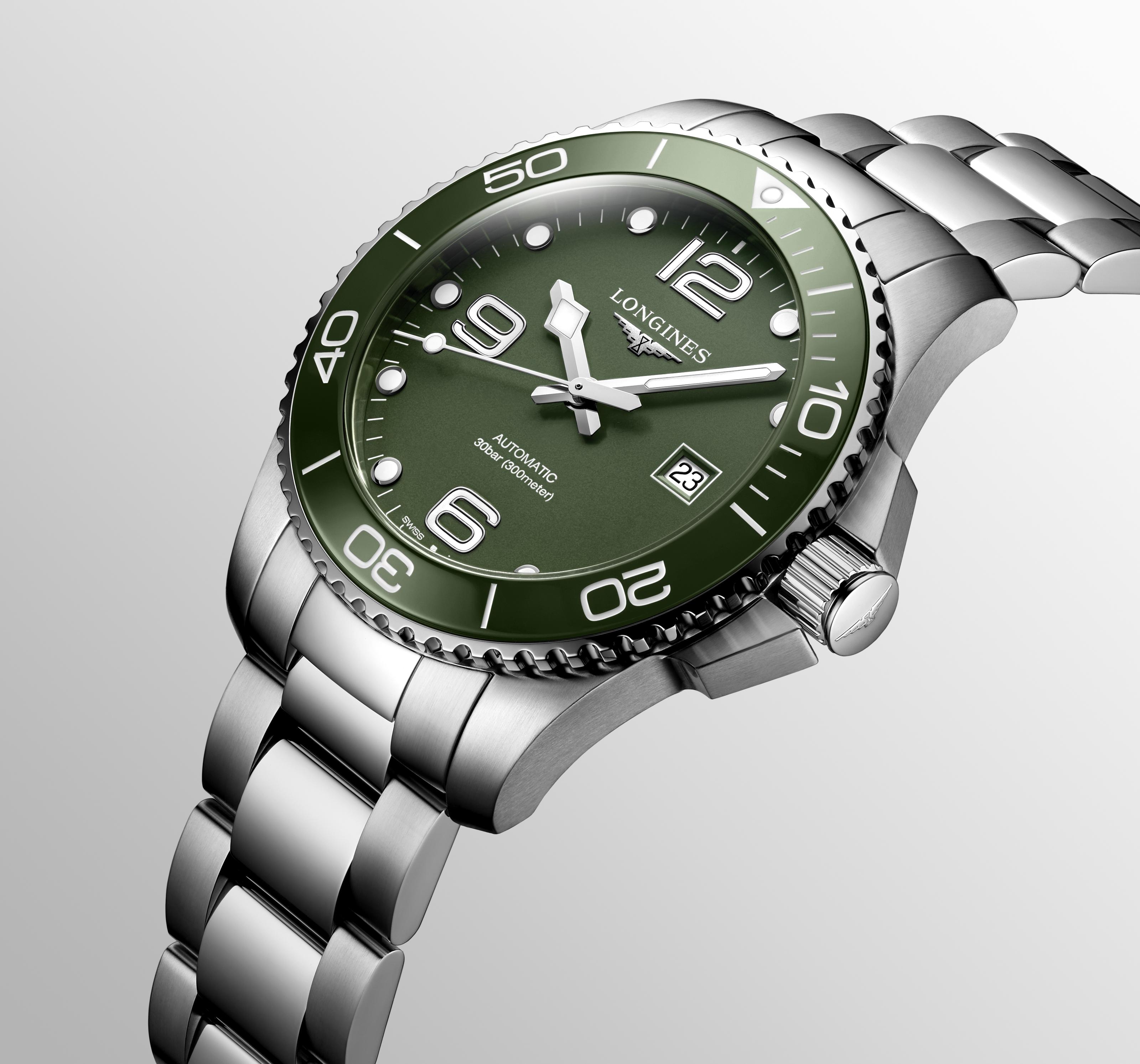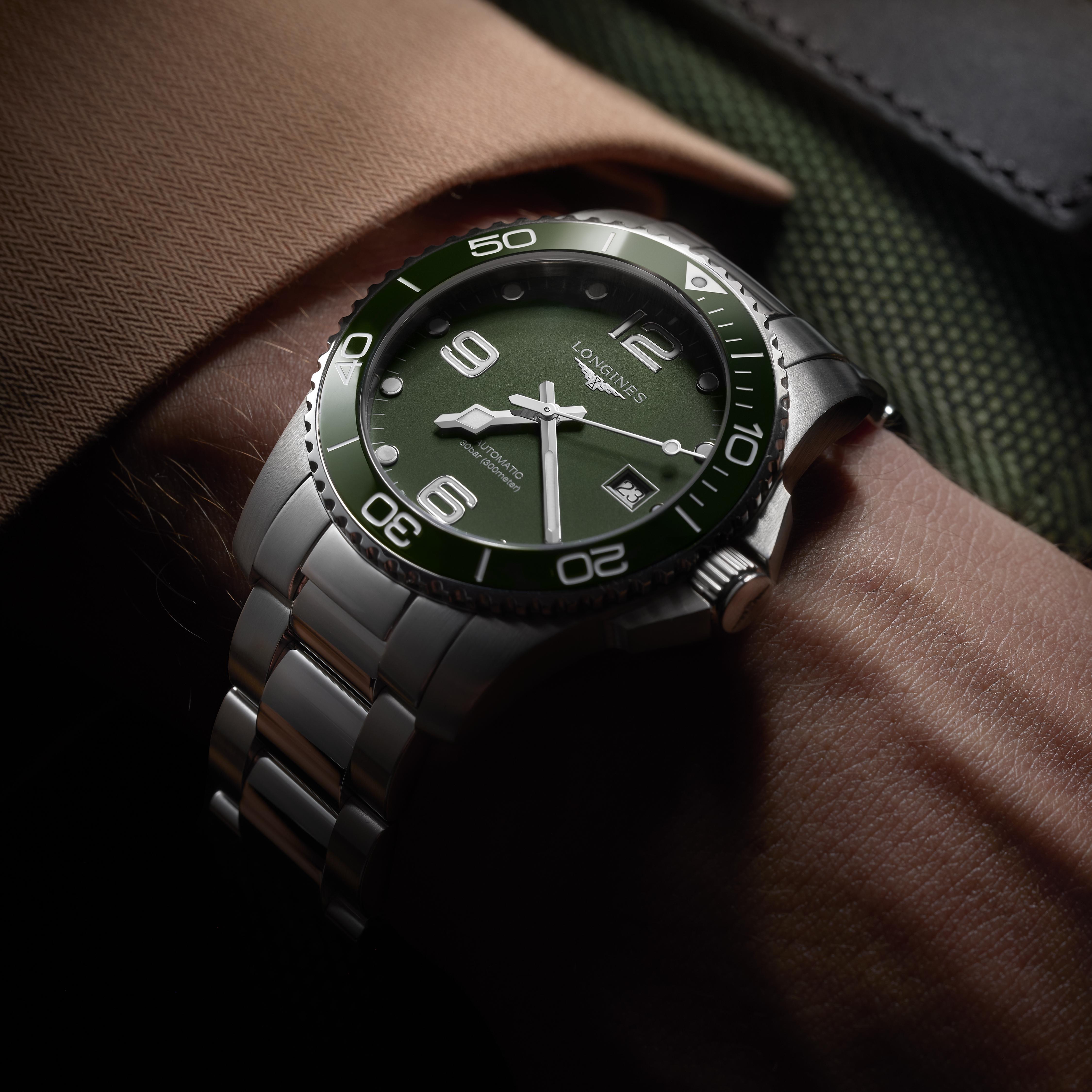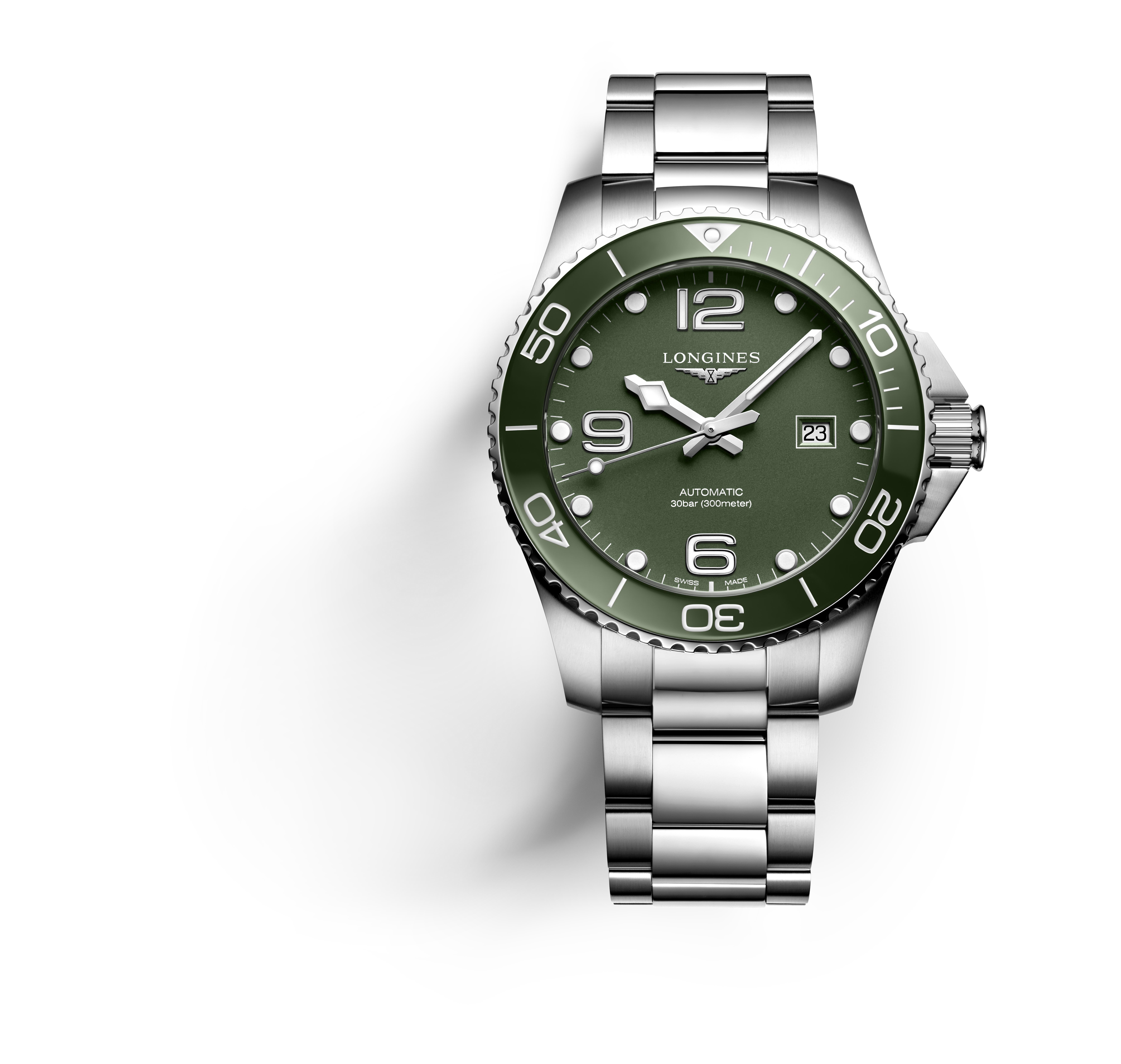 Kolekce hodinek LONGINES HydroConquest byla obohacena o další verze v odstínech zelené. V řadě, které dříve dominovaly modré, šedé a černé hodinky, představujeme nový zelený model inspirovaný fascinujícím světem vodních sportů. Vybavený kroužkem na obrubě obohaceným o keramickou vložku , zdůrazňuje prestiž designu, brilantnost a moderní styl.