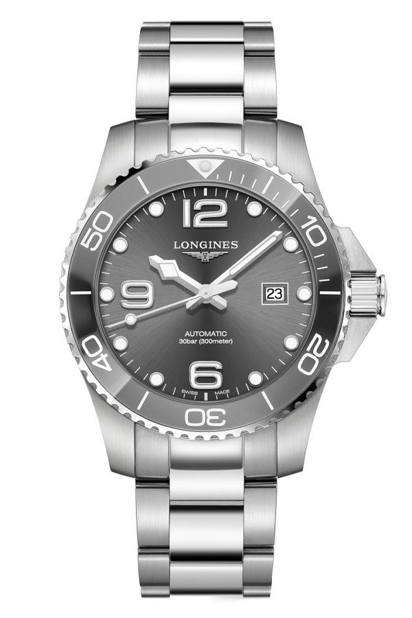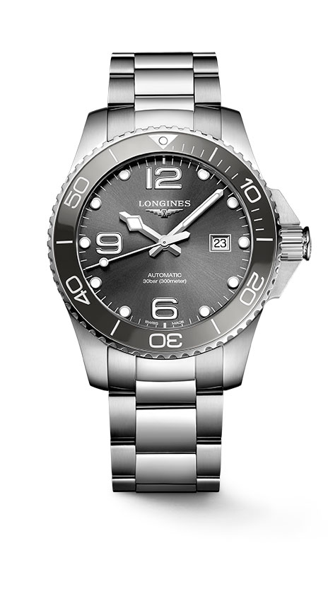 Longines HydroConquest Automatic verze L3.782.4.76.6 s průměrem pouzdra 43 mm . Model, který zahrnuje všechny estetické vlastnosti skutečných diverských hodinek. Hodinky Longines vyvinuté tak, aby upevnily schopnost Longines vyrábět hodinky pro náročné sportovce. Pevné a spolehlivé provedení diverských hodinek, pouzdro je vyrobeno z nerezové oceli, která je odolná vůči korozi. Otočná luneta s šedou keramickou vložkou, stejně jako ručičky a indexy, je velmi přehledná, což je při potápění velmi důležité. Luminiscenční látka ve tmě velmi silně svítí. Hodinky mají šroubovací pouzdro a korunku, které je utěsní až do 30 barů. Longines HydroConquest Automatic kombinuje nadčasové kouzlo s nejnovější technologií. Efektivita a elegance. Náramek se pohodlně nosí a má zacvakávací zámek s dodatečným zabezpečením a možností rychlého rozšíření na diverský oblek.