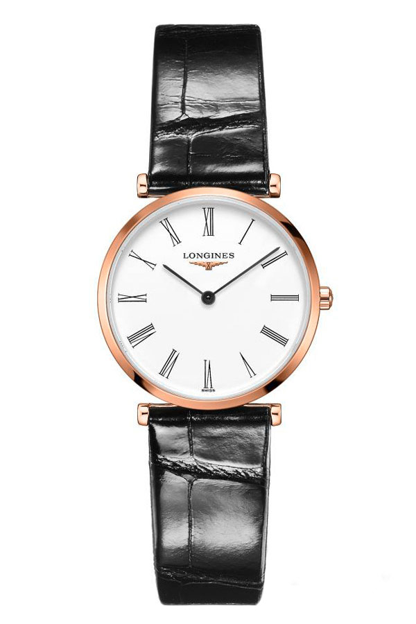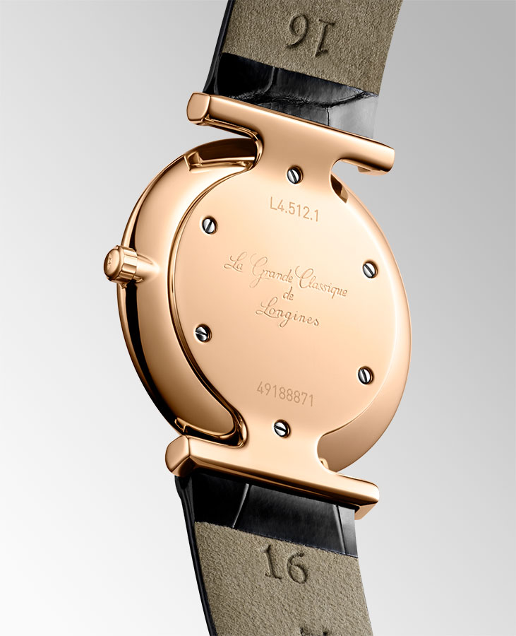 Kolekce Longines La Grande Classique byla poprvé uvedena na trh v roce 1992 a od té doby je pilířem značky. Od samého počátku představuje autenticitu, nadčasový styl a elegantní klasiku. Kultovní 29mm pouzdro, jehož hřbet tvoří také očka exkluzivního černého koženého řemínku z aligátora. Longines L4.512.1.97.2 je vyroben z vysoce odolné a odolné nerezové oceli, která je potažena tvrdým PVD růžovým zlatem. Logotyp okřídlených přesýpacích hodin švýcarského výrobce je umístěn na bílém ciferníku, který je chráněn nepoškrábatelným a křišťálově čistým safírovým sklem.