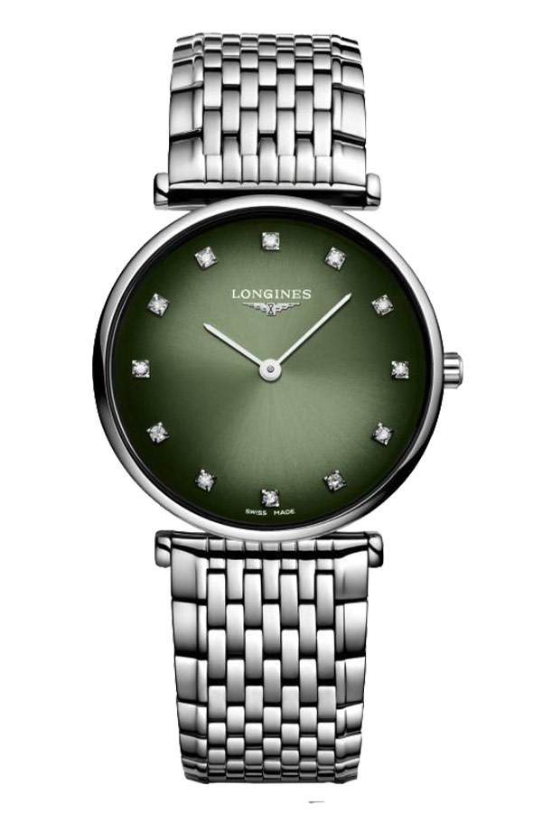 Kolekce Longines La Grande Classique byla poprvé uvedena na trh v roce 1992 a od té doby je pilířem značky. Od samého počátku představuje autenticitu, nadčasový styl a elegantní klasiku. Nejnovější verze, stejně jako tento okouzlující model, se vyznačuje krásným přechodovým zeleným ciferníkem. 12 0,081 karátových diamantů na indexech dodává neuvěřitelnou, exkluzivní brilanci. Hrdé logo 12 hodin a tenké stříbrné ručky jsou chráněny safírovým sklem odolným proti poškrábání. Oblíbené pouzdro a jeho vyčnívající okraje, které jsou zároveň očky, jsou kombinovány s exkluzivním, lehkým a příjemným náramkem rozepínaným na knoflíky.