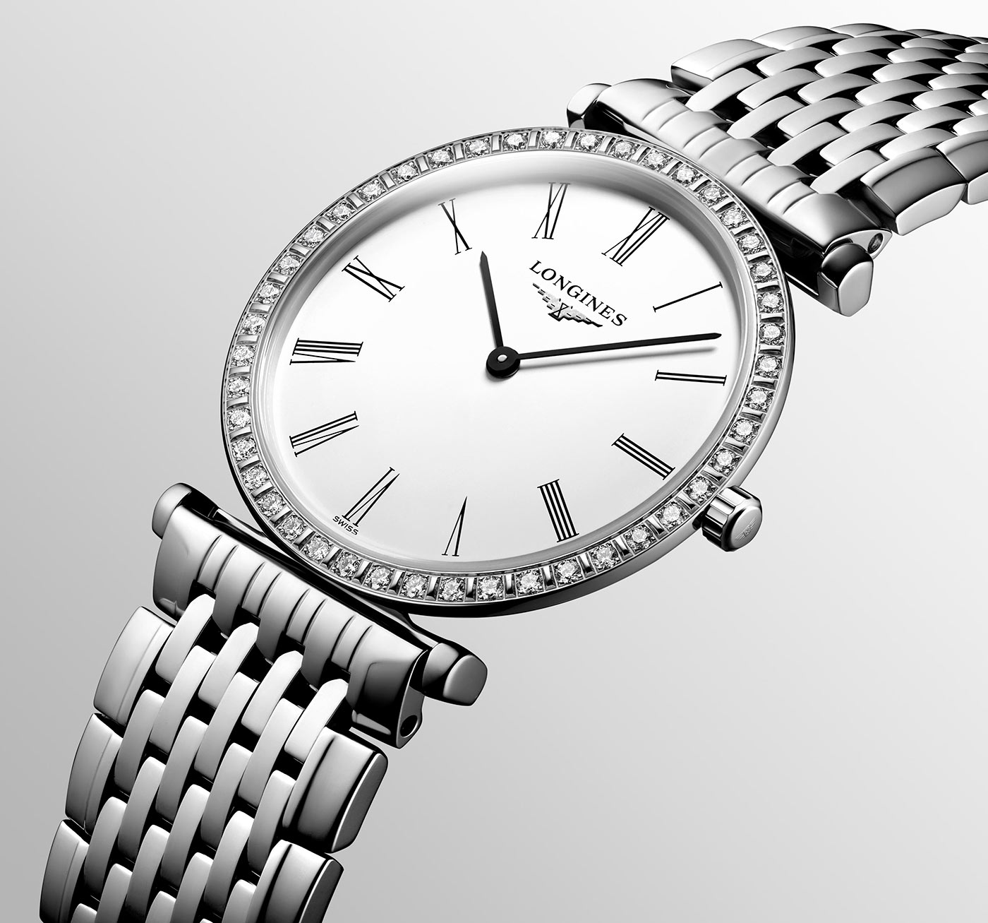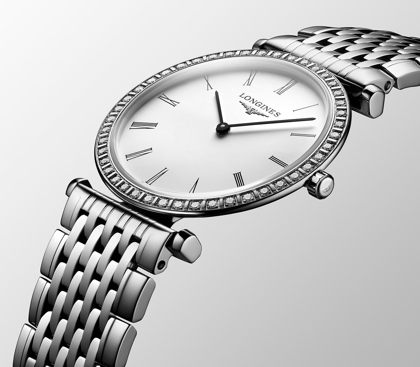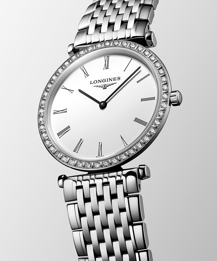 Mimořádně tenký pouzdro o průměru 29 mm je vyrobeno z odolné nerezové oceli s leštěným povrchem. Ostře oddělený náramek ze stejného noblesního materiálu má mnoho řad, což zajišťuje pohodlné nošení těchto elegantních hodinek. Safírové sklo zajišťuje vynikající ochranu před poškrábáním, zachovávající zároveň dokonalou průhlednost. Uvnitř pouzdra je spolehlivý kvartzový mechanismus kalibru L420, zaručující švýcarskou přesnost.