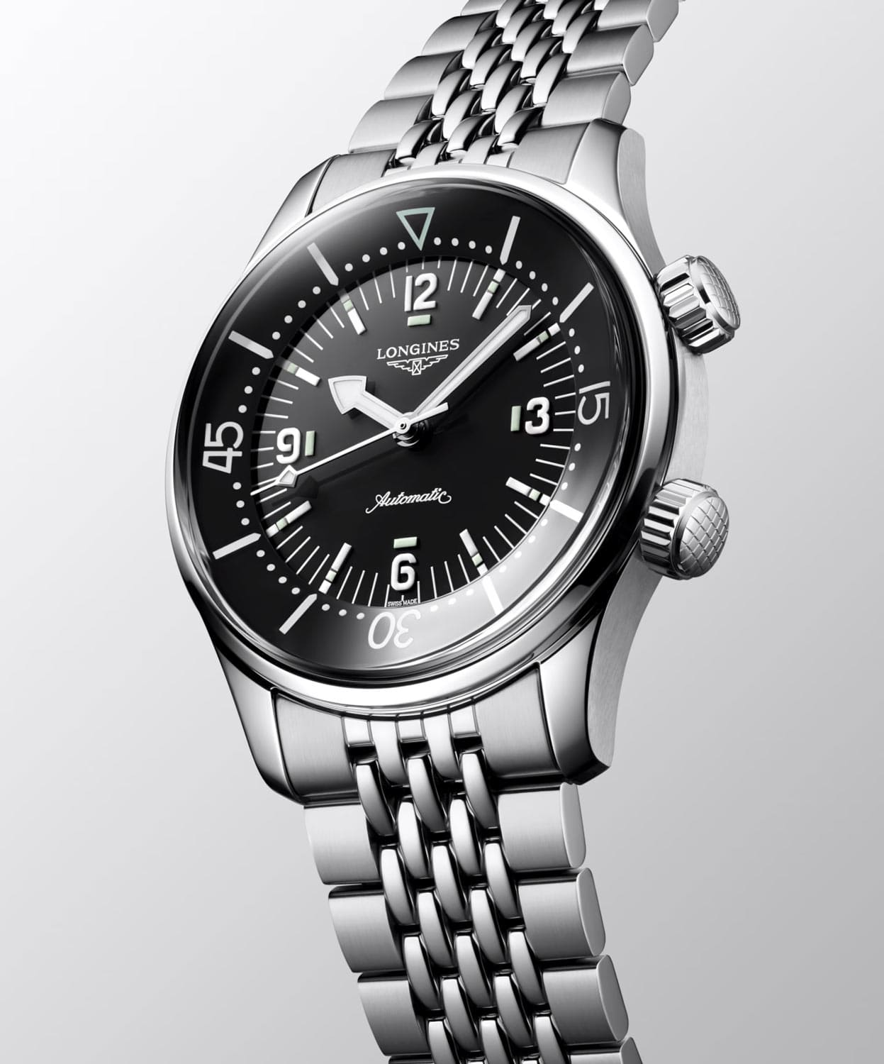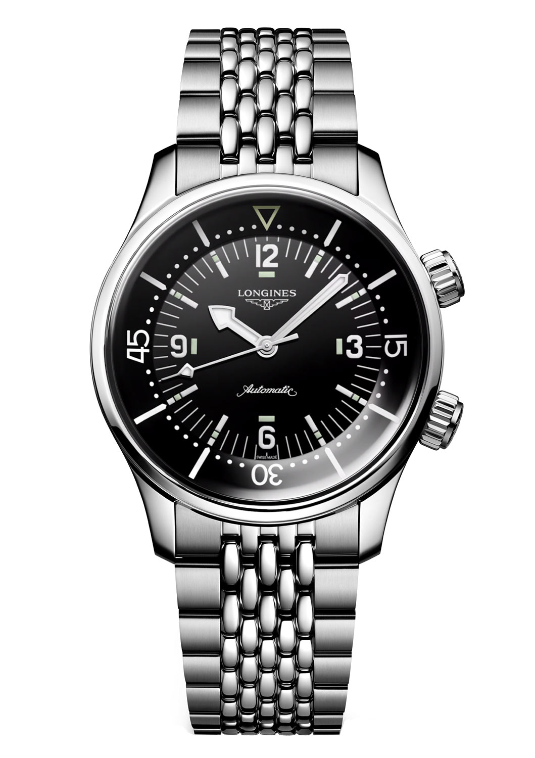 Pod číselníkem modelu Longines Legend Diver se nachází exkluzivní automatický strojek kalibr L888 COSC s rezervou chodu až 72 hodin. Strojek poháněný pohybem zápěstí je vybaven antimagnetickým balančním vlasem, jehož antimagnetické vlastnosti zaručují přesnost i v blízkosti magnetického pole. Kalibr L888.6 vytvořený pro značku Longines má speciálně vyztužené prvky, které překračují požadavky normy ISO 764 a jsou desetkrát odolnější vůči magnetickému poli než jiné hodinky. Prezentované hodinky Longines jsou k dispozici s ocelovým náramkem. Jeho motýlková spona zajišťuje bezpečnost a pohodlí při nošení.