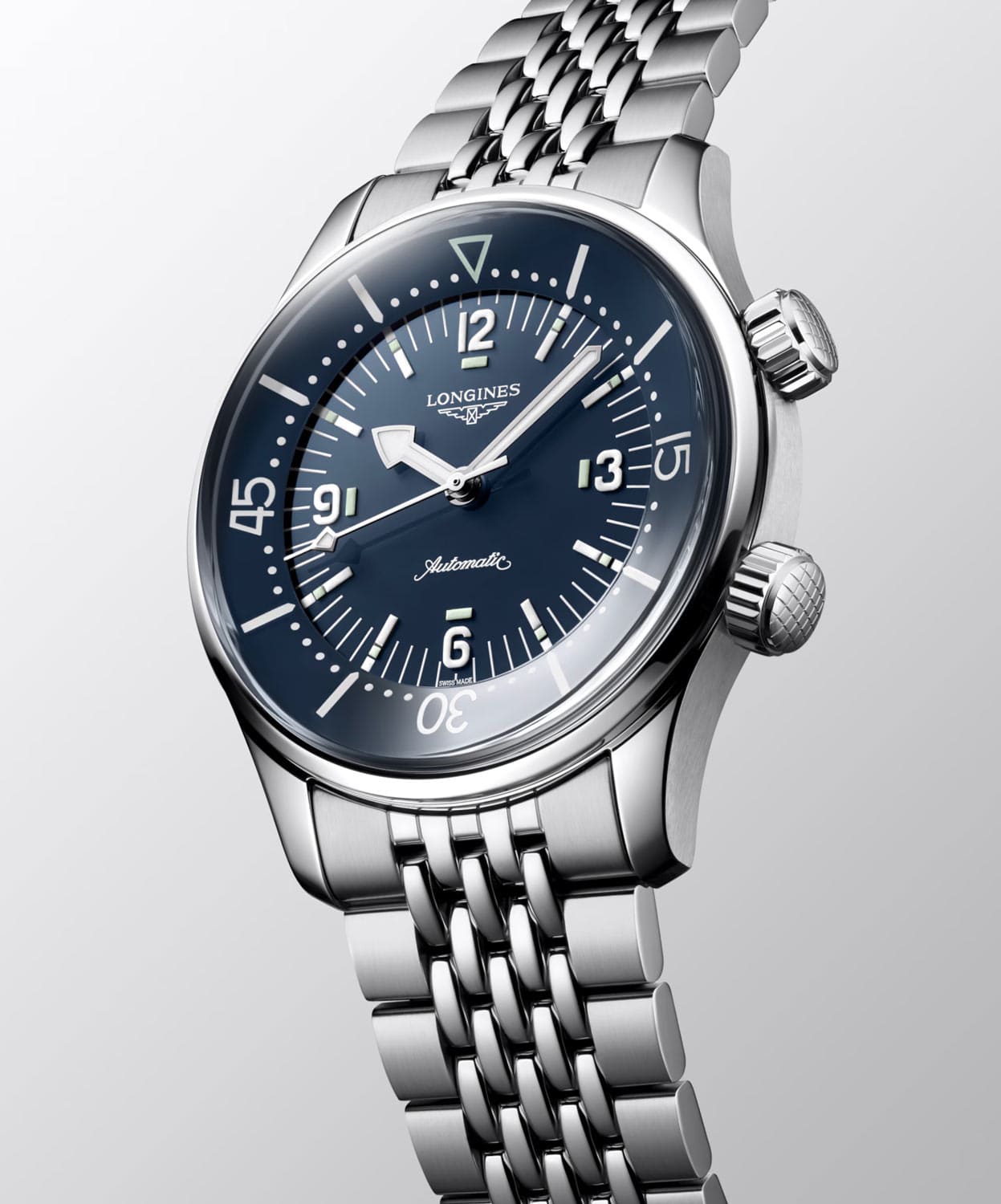 Pod číselníkem modelu Longines Legend Diver se nachází exkluzivní automatický strojek kalibr L888 COSC s rezervou chodu až 72 hodin. Strojek poháněný pohybem zápěstí je vybaven antimagnetickým balančním vlasem, jehož antimagnetické vlastnosti zaručují přesnost i v blízkosti magnetického pole. Kalibr L888.6 vytvořený pro značku Longines má speciálně vyztužené prvky, které překračují požadavky normy ISO 764 a jsou desetkrát odolnější vůči magnetickému poli než jiné hodinky. Prezentované hodinky Longines jsou k dispozici s ocelovým náramkem. Jeho motýlková spona zajišťuje bezpečnost a pohodlí při nošení.
