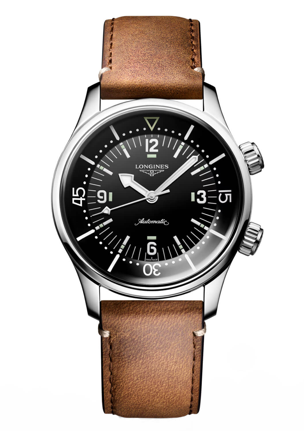 Longines Legend Diver Watch L37644500 jsou sportovní a elegantní diverské hodinky v retro stylu. Svým designem potěší fanoušky vintage doplňků. Pevné materiály v kombinaci s precizností mechanismu L888 COSC nezklamou náročné. Módní design a barvy těchto diverských hodinek Longines usnadňují jejich sladění s elegantními koženými botami nebo páskem od kalhot. Snadno se hodí jak k obleku, tak ke každodennímu outfitu. Hodinky Longines Legend Diver Automatic na koženém řemínku budou perfektním doplňkem každého šatníku. Od vintage šatních skříní až po ty z moderní doby.