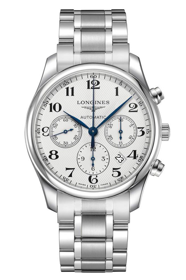 Nejkrásnějším prvkem těchto hodinek je stříbrný ciferník zdobený vzorem Clous De Paris a arabskými indexy. Úhledné modré ručičky jsou zodpovědné nejen za ukazování času, ale také za měření chronografu a stopek. Lehce vypouklé safírové sklíčko odolné proti poškrábání a vyhlazené hrany pouzdra dodávají eleganci. Skleněná záda pouzdra nám umožňují nahlédnout do krásně zpracovaného automatického Machineku ETA A08.L01 s funkcí chronografu. Machineek obsahuje sloupové kolo, které ztělesňuje odborné znalosti společnosti Longines v oblasti mechanického časování. Reaguje na očekávání zákazníků fascinovaných tradičními hodinářskými řešeními. Výrobní proces je složitý, protože kolo sloupku musí být dokonalé, aby byla zajištěna spolehlivost a přesnost mechanismu. Extrémně snadno použitelné stopky: funkce start, stop a reset vyžadují pouze lehký dotyk. 54hodinová rezerva chodu tohoto kalibru je větší než průměrná rezerva chodu vačkových chronografů. Obvykle kolo vyrobené z modře zbarvené oceli.