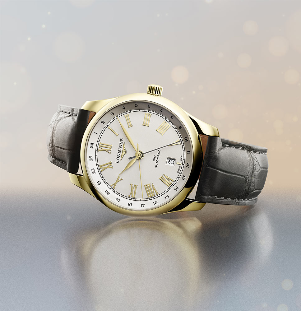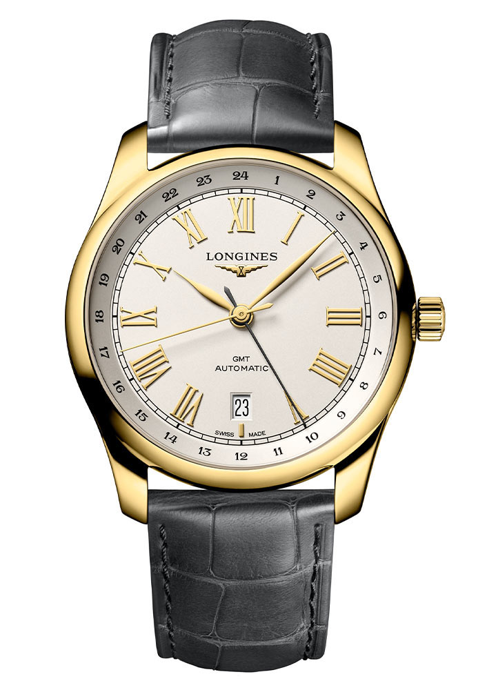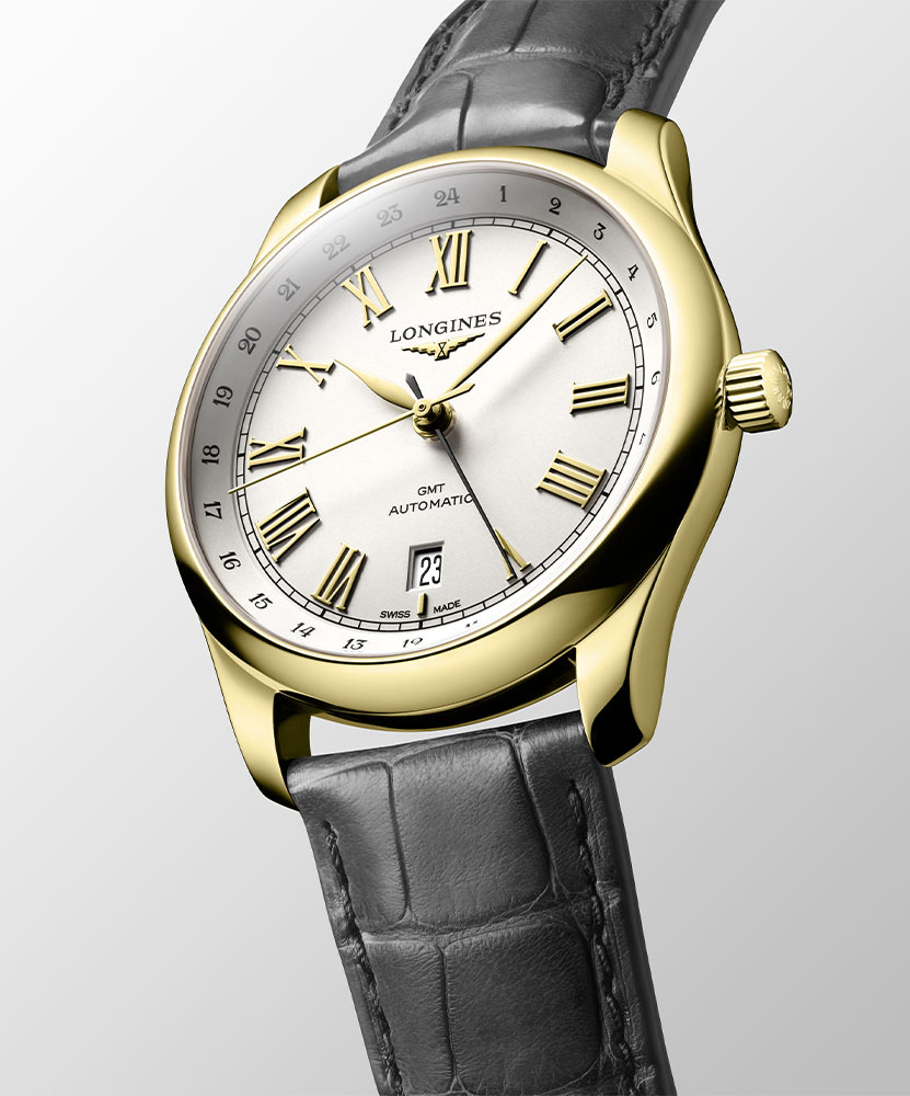 Zlatý pouzdro o průměru 40 mm skvěle ladí s páskem ze exotické kůže v šedé barvě. Vytváří spojení, které nejen zdůrazňuje prestiž a luxus těchto hodinek, ale také svědčí o péči o detaily. Švy a elegantní přezka dokreslují celkový dojem, dodávají hodinkám rafinovaný charakter a neopakovatelný šarm. Longines Master Collection GMT jsou hodinky pro znalce, pro ty, kteří si cení nejen technické dokonalosti, ale také estetiky a jedinečného stylu. Jsou to nepochybně pravá díla hodinářského umění.