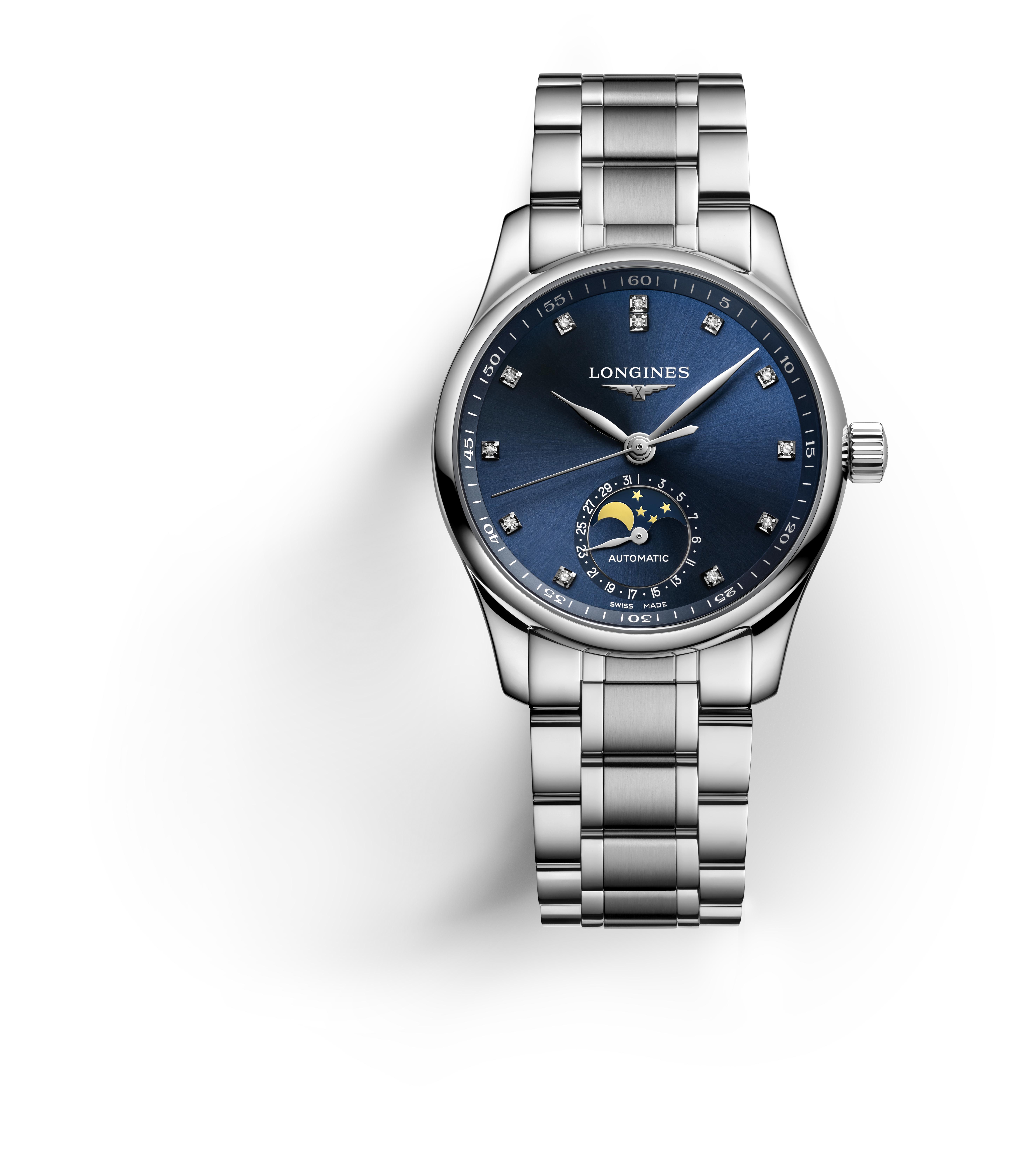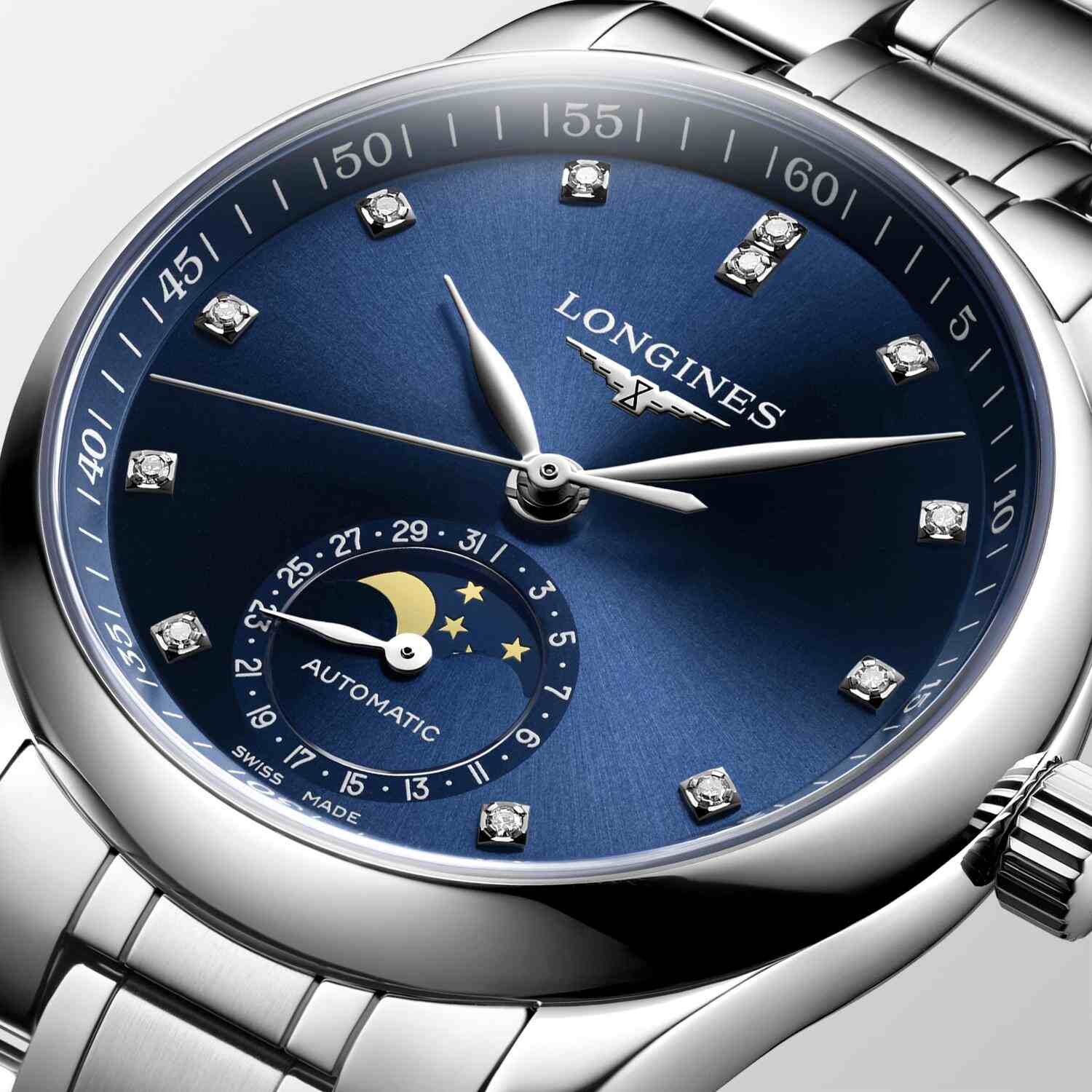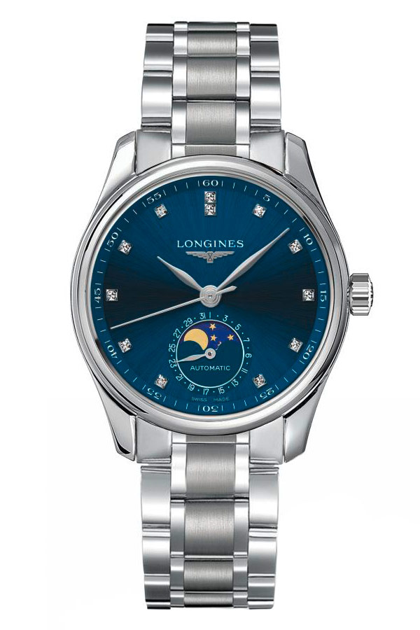 Dámské hodinky Longines Master Collection L2.409.4.97.6 jsou luxusním a propracovaným modelem pro ženy od švýcarského výrobce hodinek LONGINES. Spojením nekompromisní kvality s klasickou elegancí se stává ideální variantou pro řídící, moderní a stylové ženy. Longines Master Collection v navrhované verzi oslní leskem 12 diamantů Top Wesselton, tmavě modrým ciferníkem s třpytivým vzorem Sunray a speciálním subciferníkem nad 6. hodinou, který funguje jak jako datum, tak i jako zobrazení fáze měsíce.
