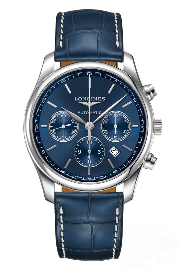 Nejkrásnějším prvkem těchto hodinek je modrý ciferník s úžasným slunečním vzorem, který šíří světlo od středu ciferníku k jeho okrajům. Ručně aplikované obdélníkové indexy dodávají kouzlo. Úhledné ručičky jsou zodpovědné nejen za ukazování času, ale také za měření chronografu a stopek. Lehce vypouklé safírové sklíčko odolné proti poškrábání a vyhlazené hrany pouzdra dodávají eleganci. Exkluzivní řemínek z pravého aligátora s motýlkovou sponou je v modré barvě. Skleněná záda pouzdra nám umožňují nahlédnout do krásně zpracovaného automatického Machineku ETA A08.L01 s funkcí chronografu. Machineek obsahuje sloupové kolo, které ztělesňuje odborné znalosti společnosti Longines v oblasti mechanického časování. Reaguje na očekávání zákazníků fascinovaných tradičními hodinářskými řešeními. Výrobní proces je složitý, protože kolo sloupku musí být dokonalé, aby byla zajištěna spolehlivost a přesnost mechanismu. Extrémně snadno použitelné stopky: funkce start, stop a reset vyžadují pouze lehký dotyk. 54hodinová rezerva chodu tohoto kalibru je větší než průměrná rezerva chodu vačkových chronografů. Obvykle kolo vyrobené z modře zbarvené oceli.