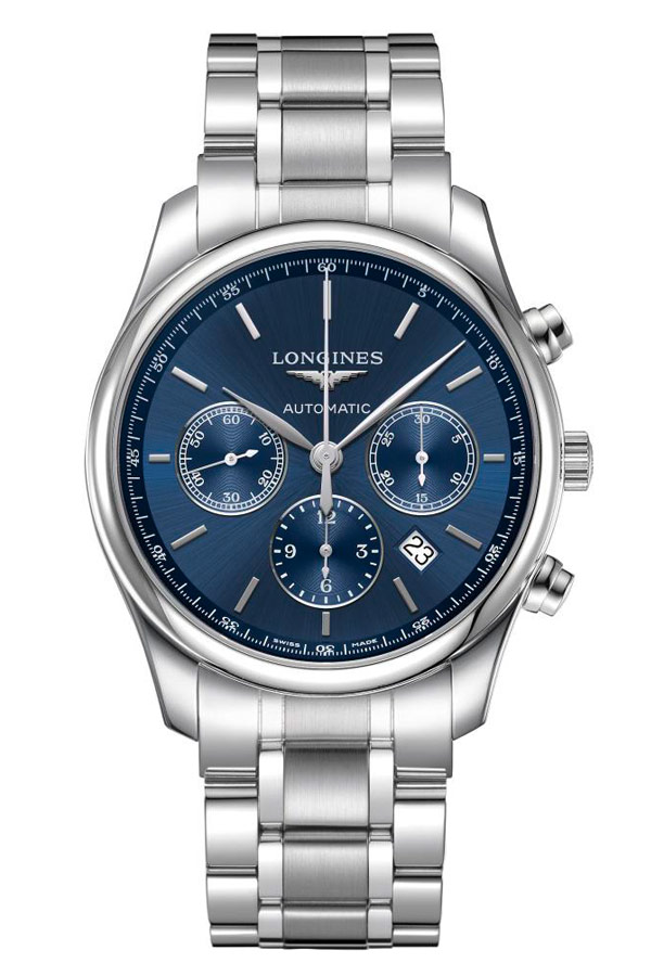 Nejkrásnějším prvkem těchto hodinek je modrý ciferník s úžasným slunečním vzorem, který šíří světlo od středu ciferníku k jeho okrajům. Ručně aplikované obdélníkové indexy dodávají kouzlo. Úhledné ručičky jsou zodpovědné nejen za ukazování času, ale také za měření chronografu a stopek. Lehce vypouklé safírové sklíčko odolné proti poškrábání a vyhlazené hrany pouzdra dodávají eleganci. Skleněná záda pouzdra nám umožňují nahlédnout do krásně zpracovaného automatického Machineku ETA A08.L01 s funkcí chronografu. Machineek obsahuje sloupové kolo, které ztělesňuje odborné znalosti společnosti Longines v oblasti mechanického časování. Reaguje na očekávání zákazníků fascinovaných tradičními hodinářskými řešeními. Výrobní proces je složitý, protože kolo sloupku musí být dokonalé, aby byla zajištěna spolehlivost a přesnost mechanismu. Extrémně snadno použitelné stopky: funkce start, stop a reset vyžadují pouze lehký dotyk. 54hodinová rezerva chodu tohoto kalibru je větší než průměrná rezerva chodu vačkových chronografů. Obvykle kolo vyrobené z modře zbarvené oceli.